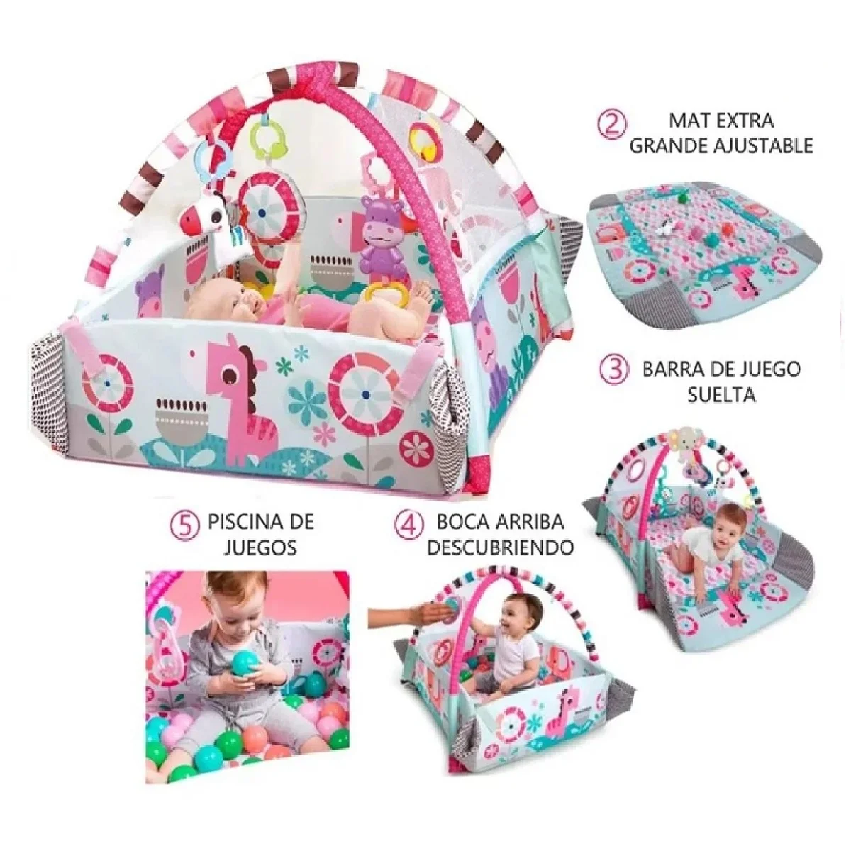 Elementos incluidos: 1 Gimnasio Piscina de pelotas Circus Rosa 5 en 1, se convierte en piscina de pelotas e incluye 30 pelotas de plástico.