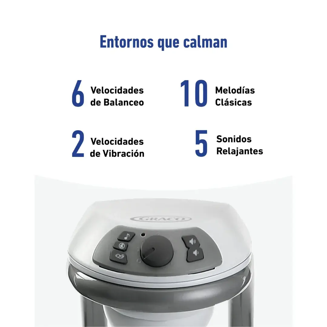 - Cuenta con 10 canciones y 5 sonidos para ayudar a que su pequeño se relaje, mientras que su vibración calmante de 2 velocidades ayuda a relajar aún más al bebé.