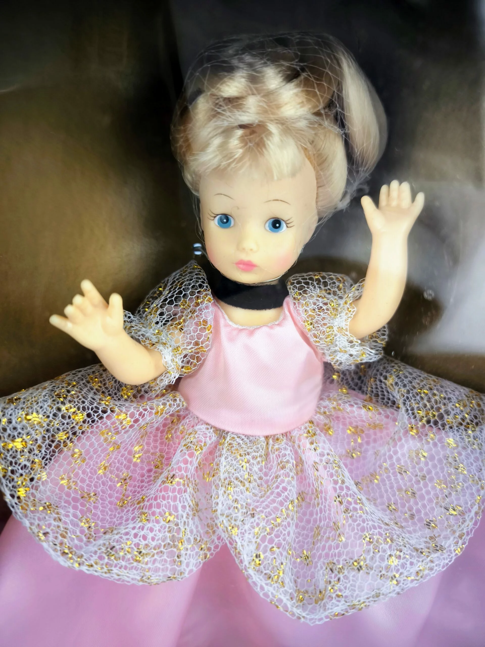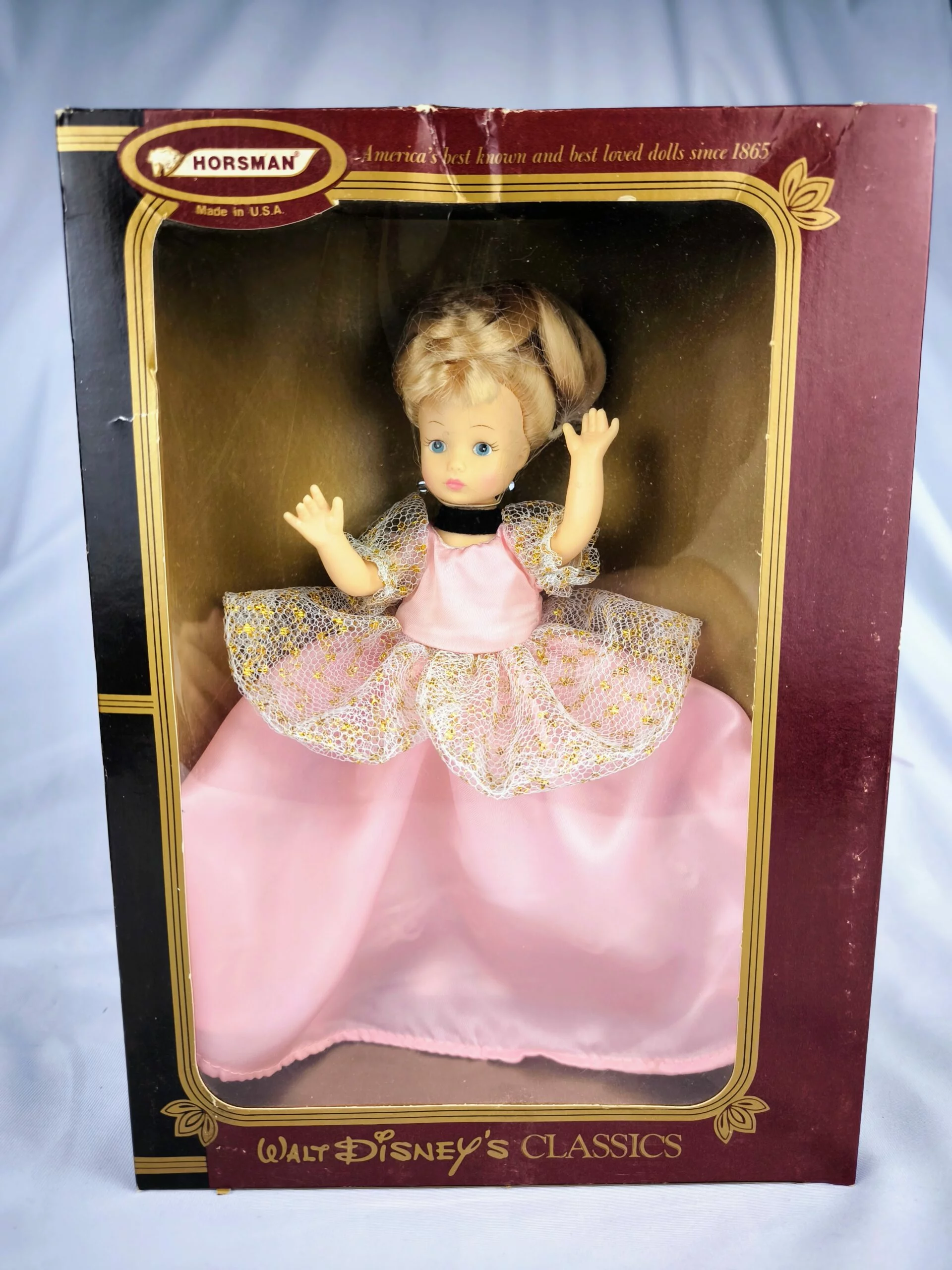 La muñeca Horsman Walt Disney’s Classics Cinderella es una hermosa pieza de colección que celebra la icónica historia de Cenicienta. Esta muñeca tiene el cabello rubio y está vestida con un vestido rosa palo con detalles de encaje, perfecto para una tarde mágica en el castillo. Su cabello es de un color rubio dorado y está peinado en un estilo clásico y elegante, con el recogido característico de Cenicienta.