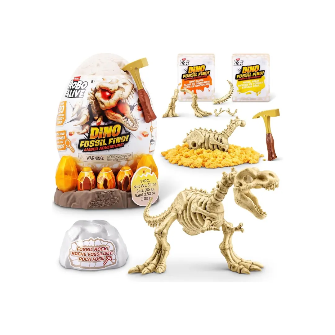 Sumergite en una emocionante aventura de excavación con el Huevo Robo Alive Fossil Find Amber Adventure de ZURU. Este set incluye un bloque para excavar, que oculta una sorpresa brillante en su interior. Utilizá las herramientas proporcionadas para descubrir poco a poco el contenido oculto y disfrutá de una experiencia divertida y sensorial.