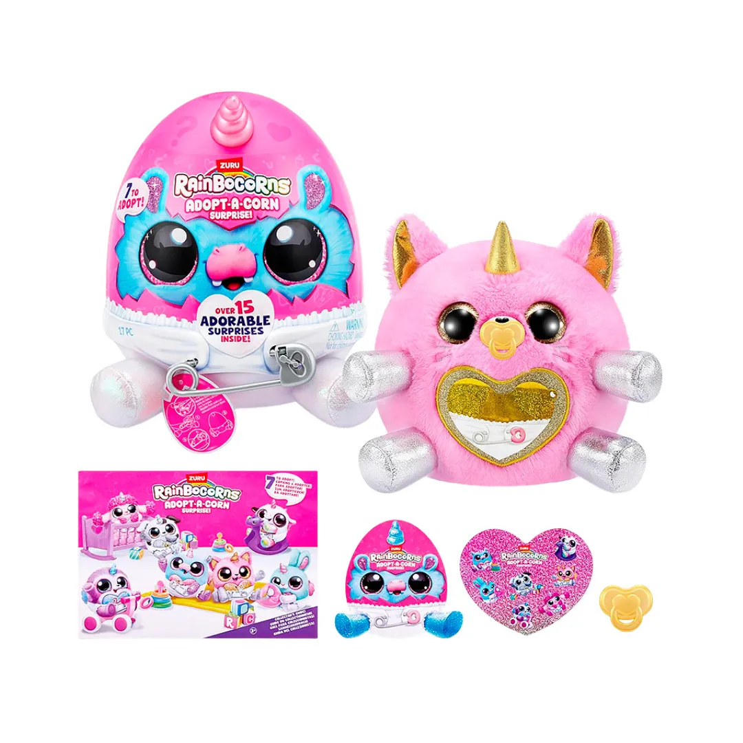 - Accesorios y sorpresas adicionales: Además del Rainbocorn, encontrarás mini sorpresas como pegatinas, pequeños compañeros, y otros divertidos accesorios para personalizar y jugar.