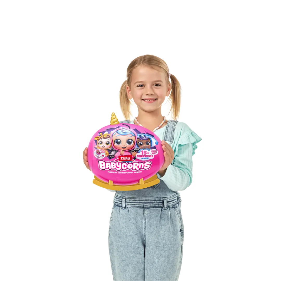Los Huevos Sorpresa Babycorns de Zuru traen toda la magia y ternura de los Rainbocorns en un divertido huevo para abrir y descubrir. Cada unidad incluye más de 15 sorpresas que encantan a los niños: un adorable bebé Babycorn, accesorios, stickers y detalles coleccionables que hacen que cada apertura sea una experiencia única. ¡La emoción está garantizada porque nunca sabés qué personaje te va a tocar!