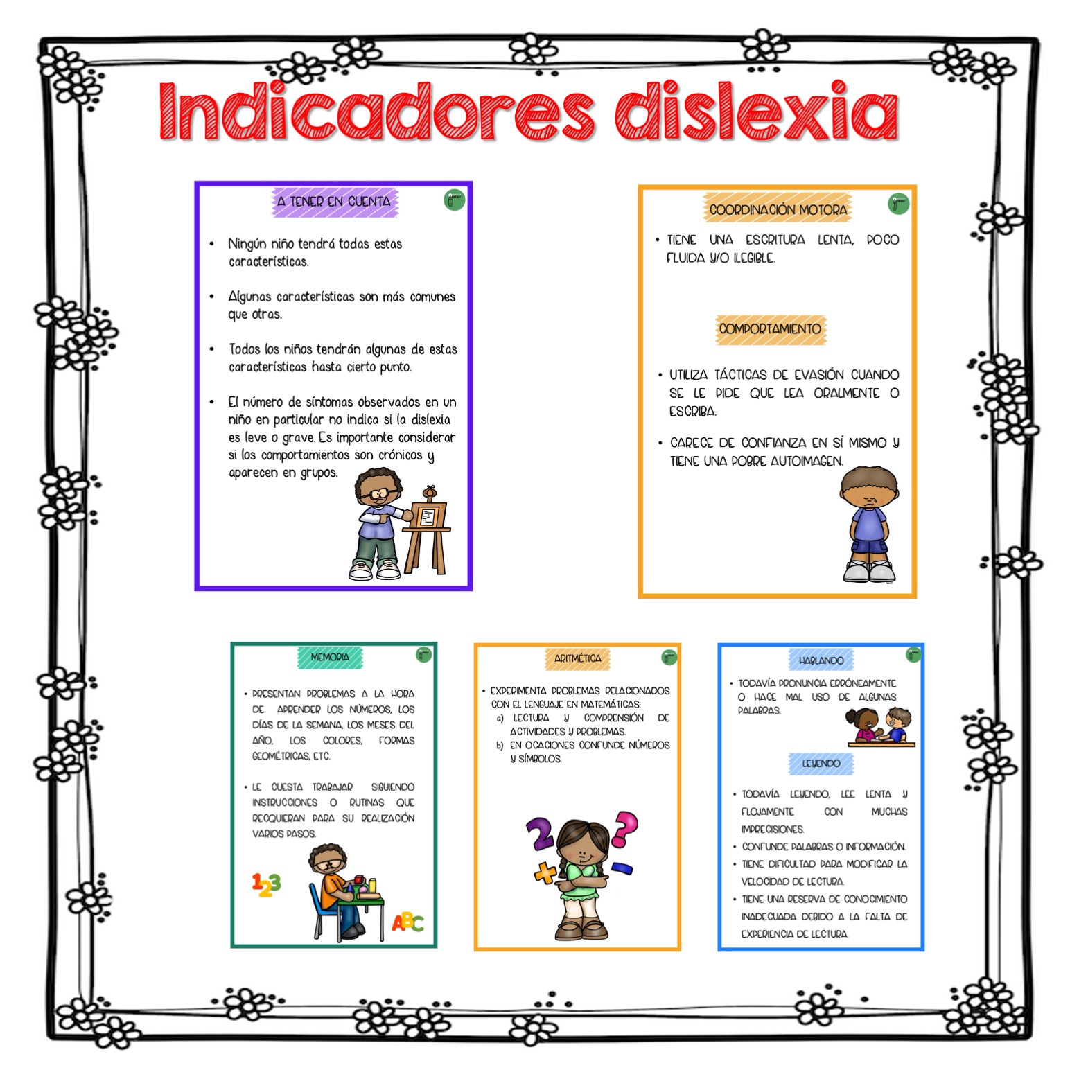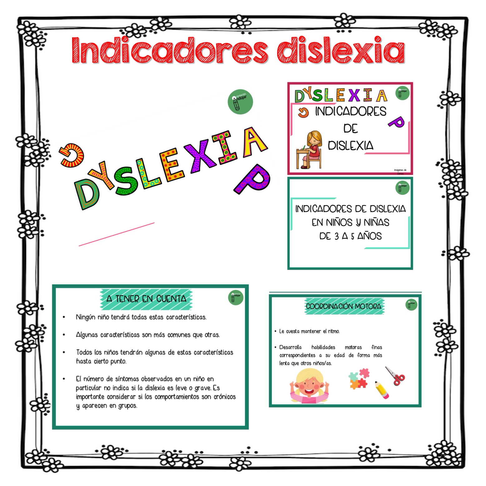 Hemos preparado este material en formato cuaderno A5 y A4, en que vas a encontrar indicadores de dislexia para niños y niñas diferenciados por edades (3-5, 5-7, 7-12 Y +12 AÑOS)