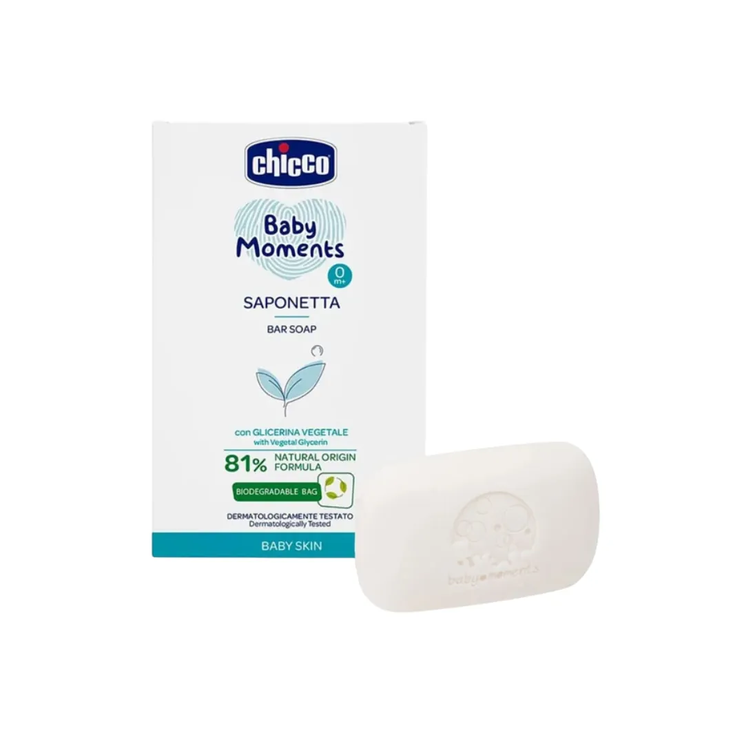 El Jabón en Barra Baby Moments de Chicco está formulado para limpiar suavemente la piel del bebé desde el primer baño. Su fórmula rica en glicerina vegetal ayuda a mantener la piel hidratada, suave y protegida. Gracias a su textura cremosa, produce una espuma delicada que elimina las impurezas sin alterar el equilibrio natural de la piel sensible del bebé.