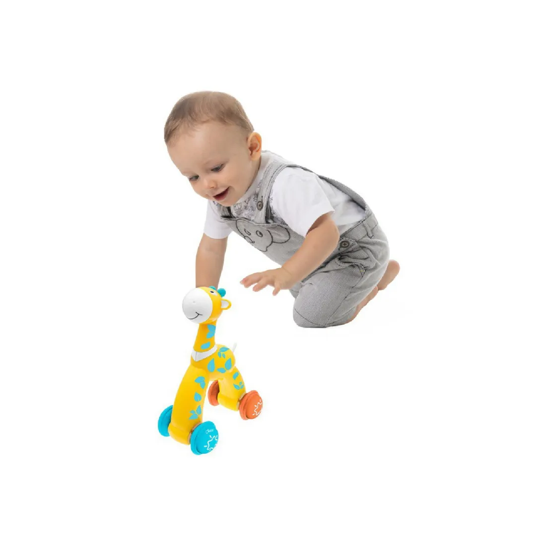 Fabricada con materiales resistentes y colores vibrantes, la Jirafa Push & Go de Chicco combina diversión, aprendizaje y seguridad. Su tamaño perfecto para manos pequeñas y su funcionamiento mecánico sin pilas la convierten en una excelente opción para acompañar los primeros pasos del bebé con alegría y confianza.