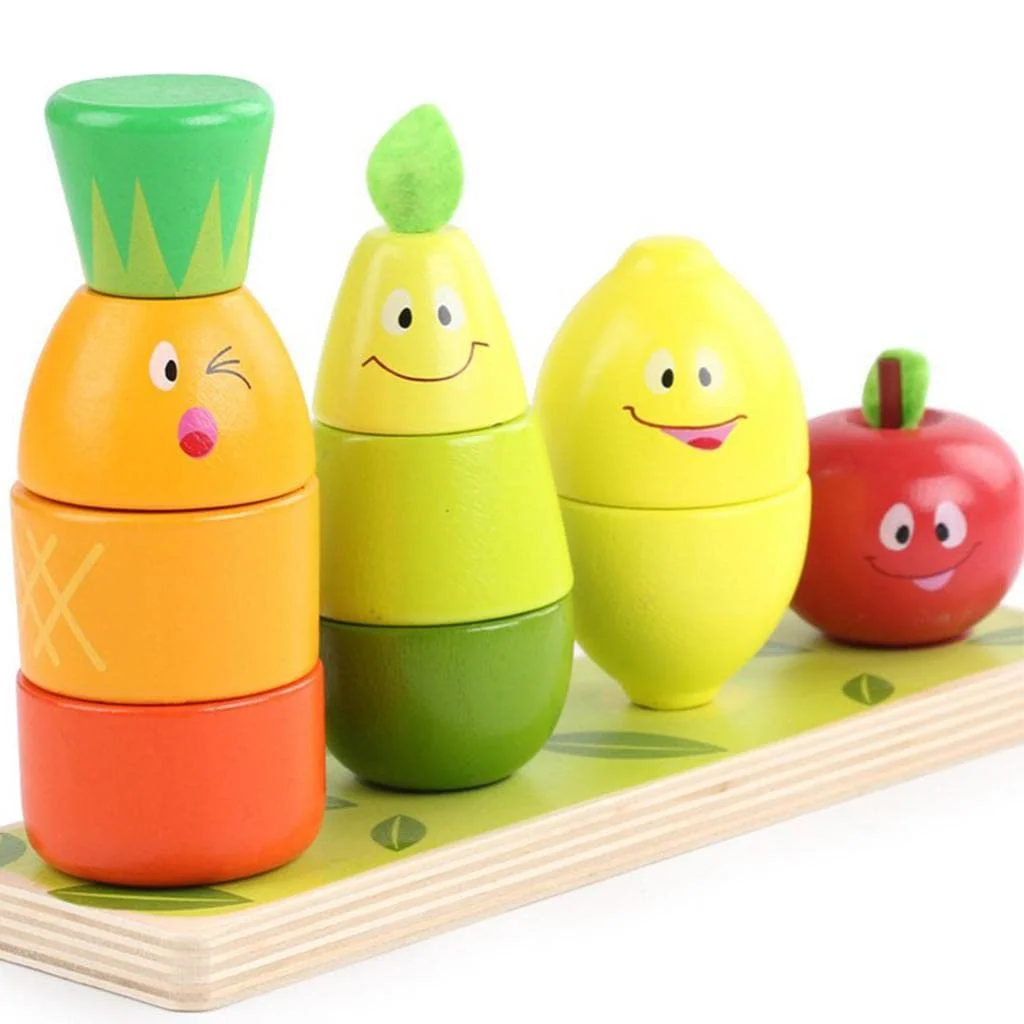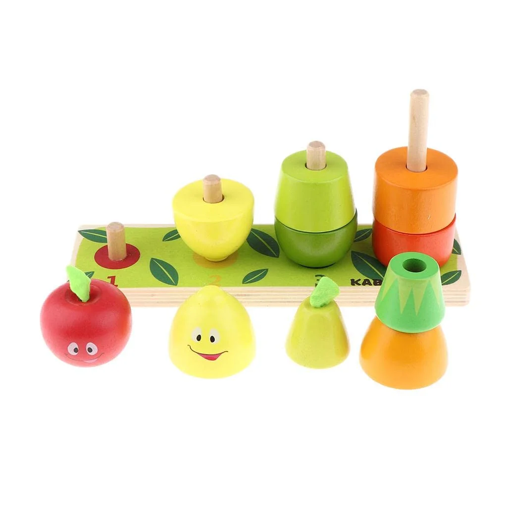 La pirámide de apilamiento de frutas es un juguete educativo que estimula el desarrollo cognitivo y motor de los más pequeños mientras se divierten colocando cada pieza en su lugar.