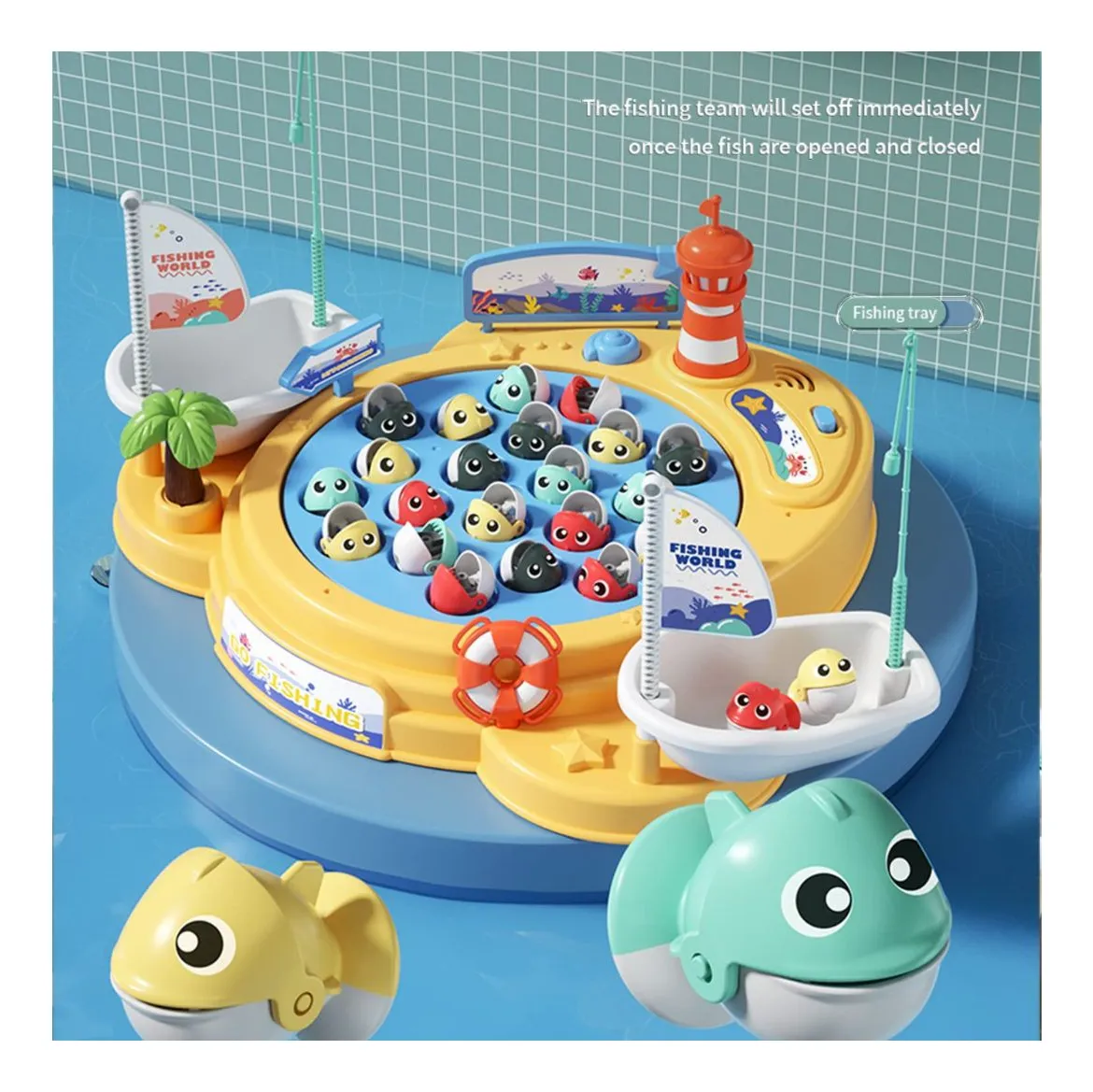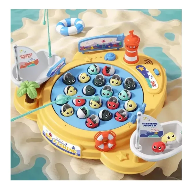¡Que empiece la aventura! La mesa de pesca magnética giratoria convierte cada momento en una experiencia emocionante. Con música envolvente y movimiento de 360°, los niños disfrutarán atrapando y soltando peces una y otra vez gracias a las cañas con imán.