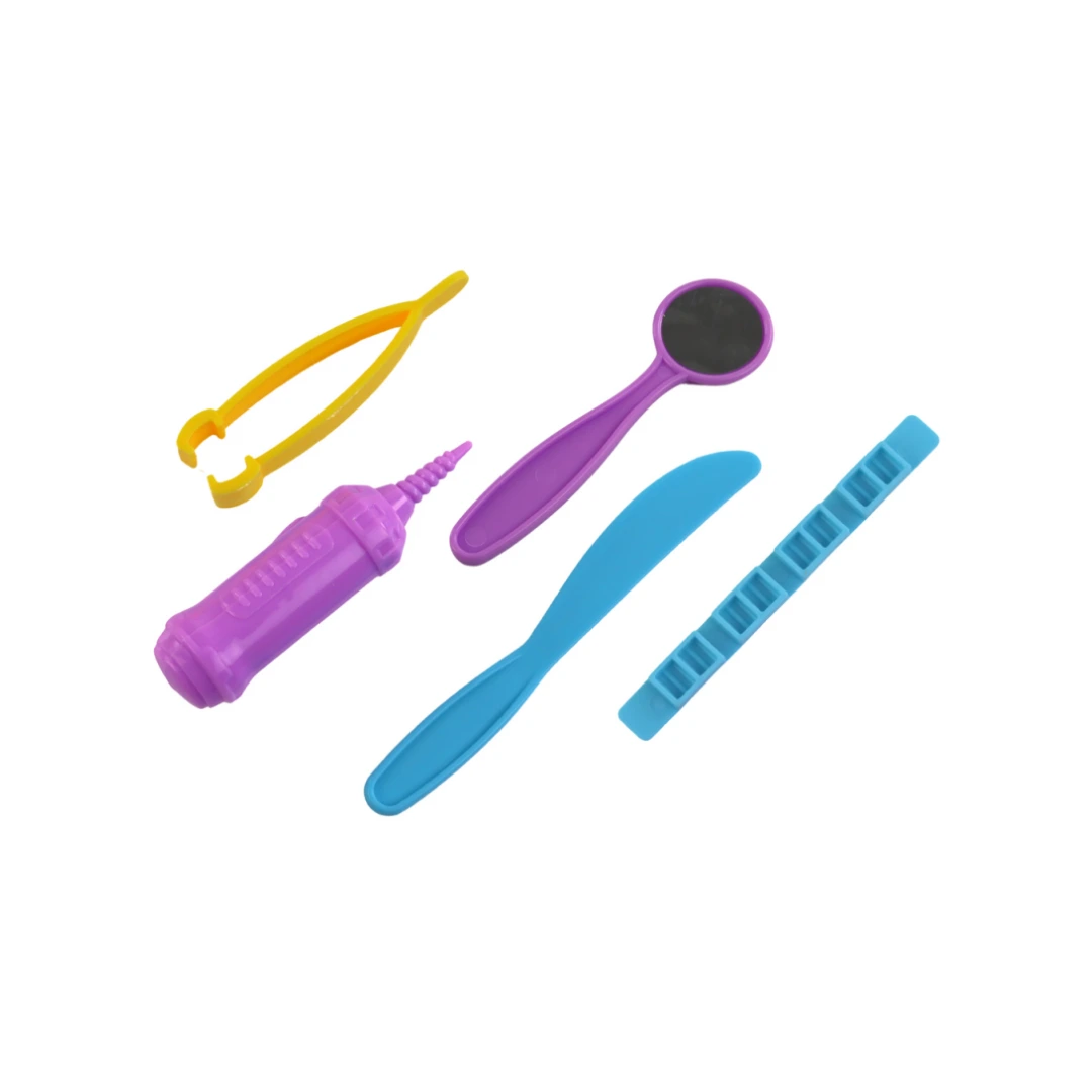 - Herramientas y Accesorios: Incluye herramientas dentales de plástico seguro, diseñadas para ser manejadas fácilmente por manos pequeñas.