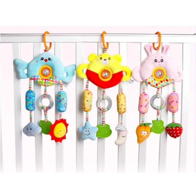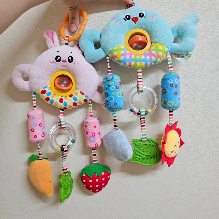 Elementos incluidos: 1 Juguete Colgante de Felpa con Sonido y Mordedor – Para Cuna y Cochecito