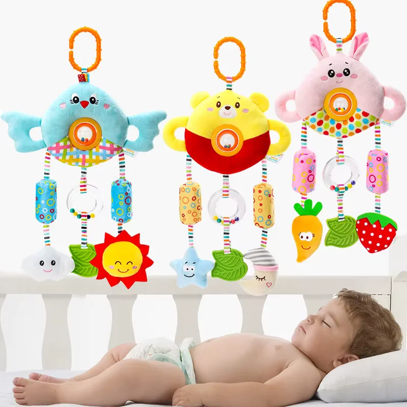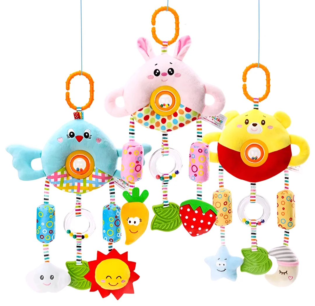 Acompaña a tu bebé en cada momento con este suave y tierno juguete colgante. Diseñado para estimular sus sentidos, ofrecer confort y hacerlo sonreír con cada sonido. Perfecto para colocar en la cuna, cochecito o asiento de auto gracias a su práctico gancho portátil.