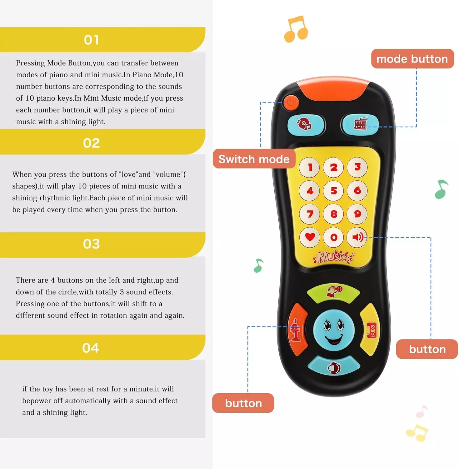 ¡Diversión interactiva para los más pequeños! El Control Remoto Musical es el juguete ideal para los niños curiosos que adoran imitar a los adultos. Con luces, sonidos y melodías, este control remoto fomenta el desarrollo de las habilidades motoras finas y el aprendizaje temprano de los números y colores.