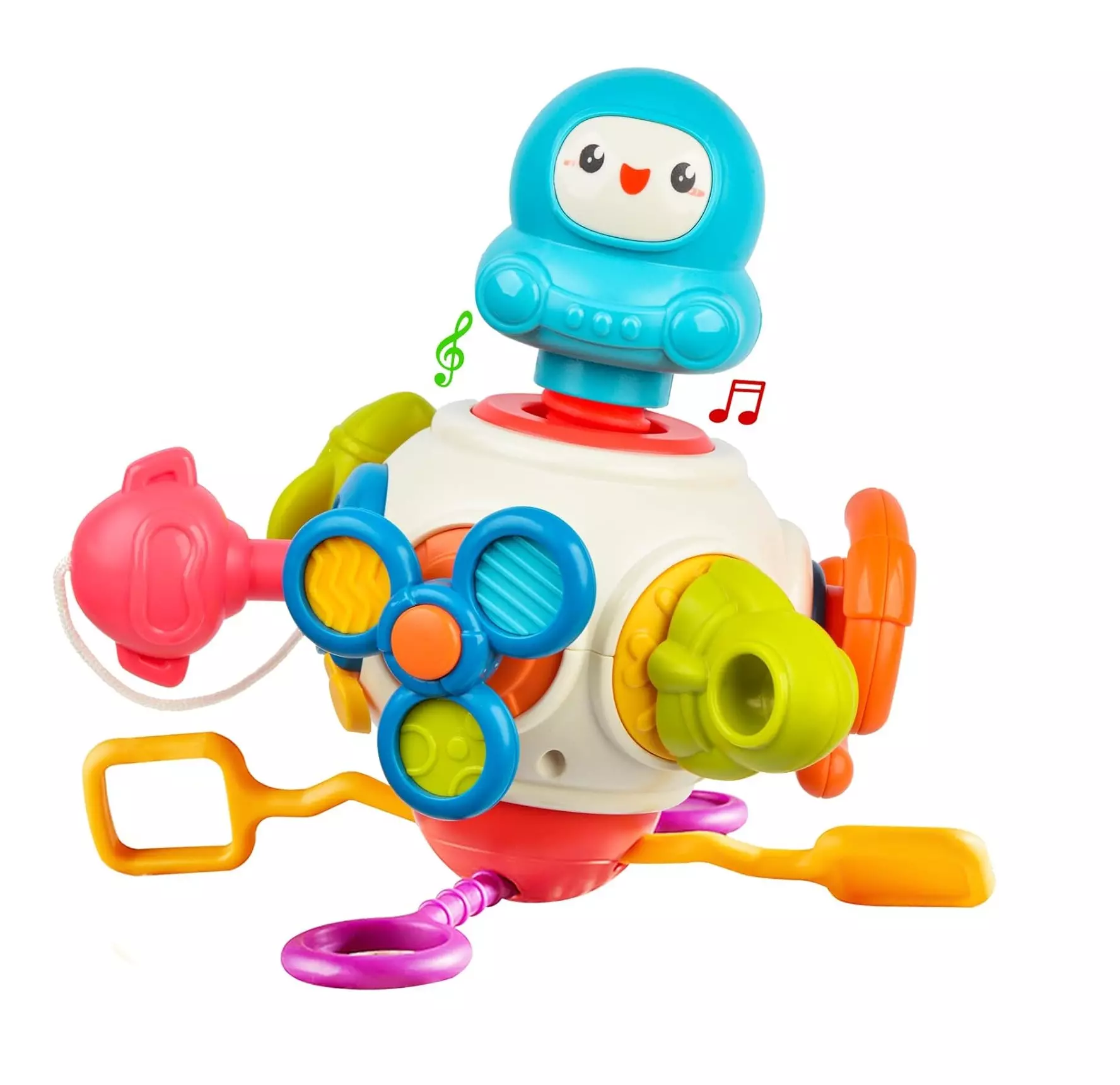 - Desarrollo de habilidades motoras finas: Este juguete promueve la coordinación ojo-mano y las habilidades motoras finas a través de acciones de agarre, tirón, rotación y presión. Con una variedad de elementos interactivos, los bebés pueden participar y entretenerse durante períodos prolongados.