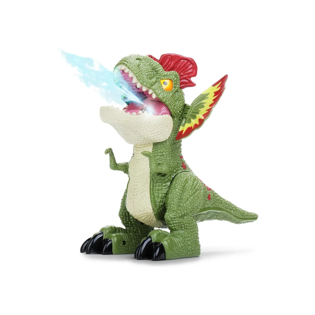 Pero eso no es todo: podés cargarle agua y sorprenderte cuando simula el aliento del dinosaurio, lanzando una niebla como si escupiera humo. Esta función, combinada con sus sonidos, lo convierte en un juguete interactivo y súper entretenido. Ideal para crear aventuras prehistóricas sin límites.