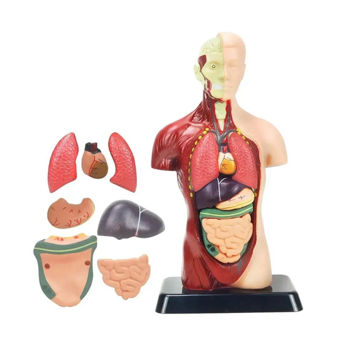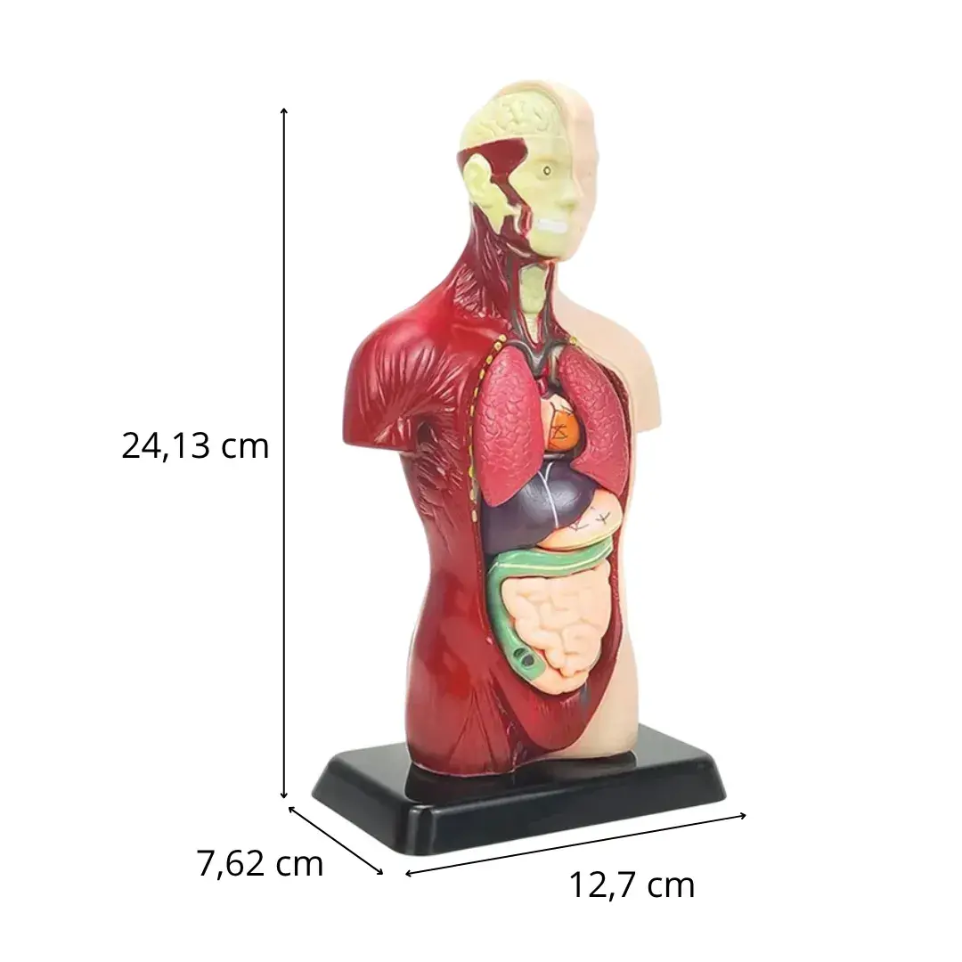 Este modelo anatómico humano es una herramienta educativa ideal para niños curiosos y entusiastas de la ciencia. Incluye 8 órganos desmontables como el cerebro, el corazón, los pulmones, el estómago y más. Con una altura aproximada de 24,5 cm, este torso de cuerpo humano permite a los pequeños explorar y comprender el funcionamiento del cuerpo de forma interactiva y divertida.