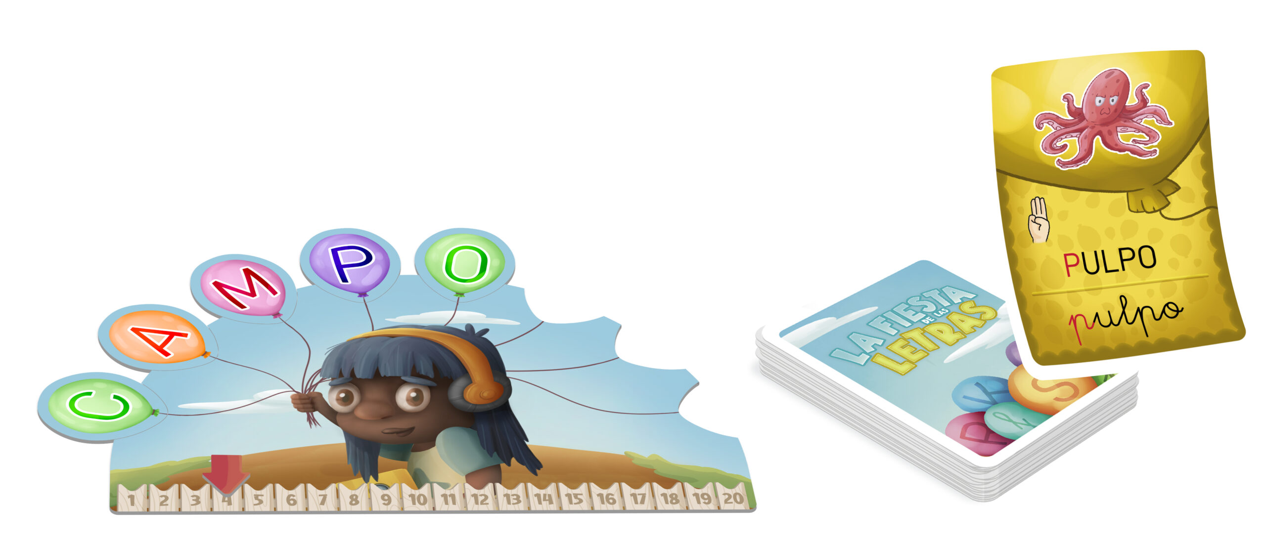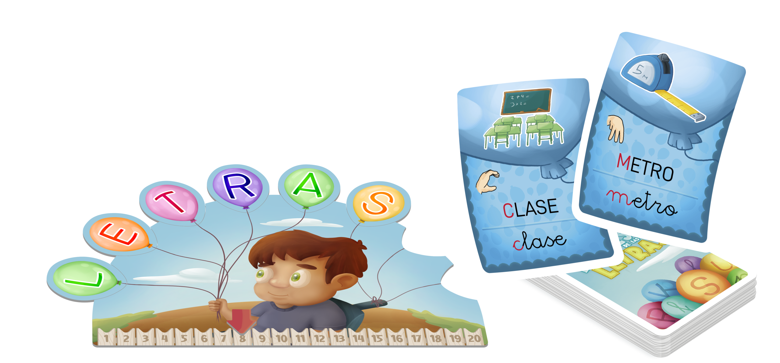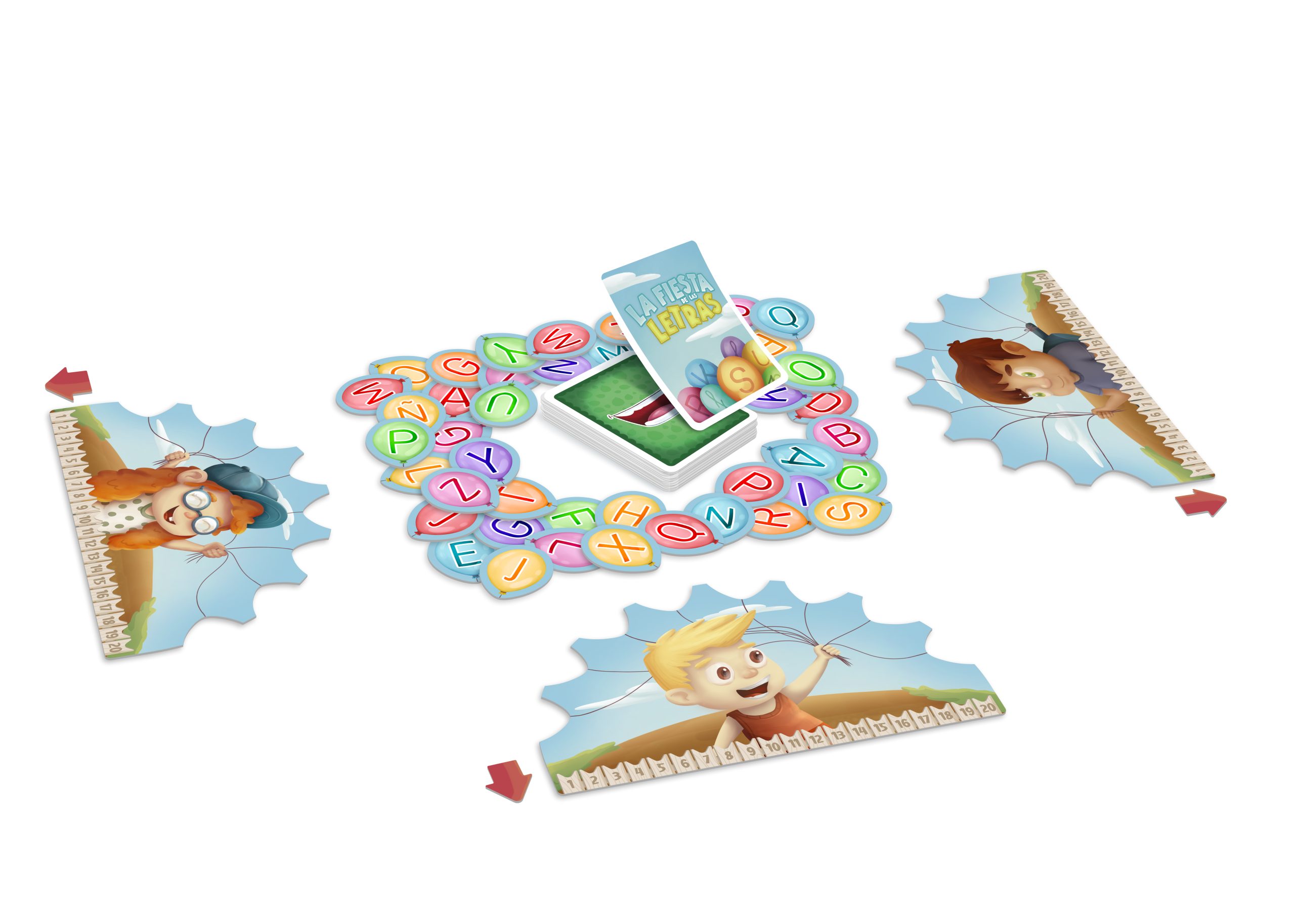 - 🧩 CONTENIDO: 4 tableros de jugador. 4 marcadores de puntos. 88 globos con letras. 96 cartas con 3 niveles de dificultad. 1 carta de Fiesta de las letras. 1 libro de instrucciones y guía con 10 modos de juego.
