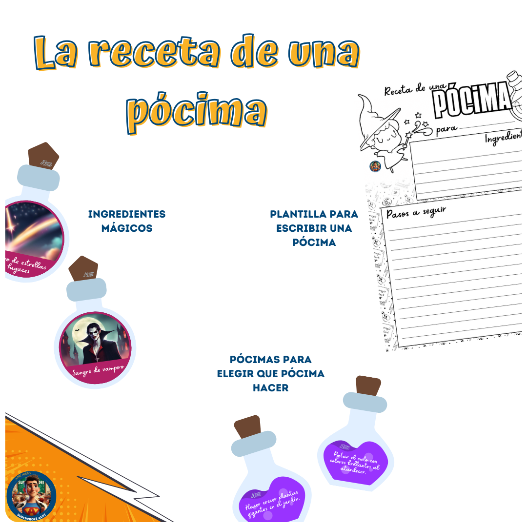 ⚗️ 18 ingredientes mágicos: que los alumnos extraerán al azar para incluirlos en su receta.