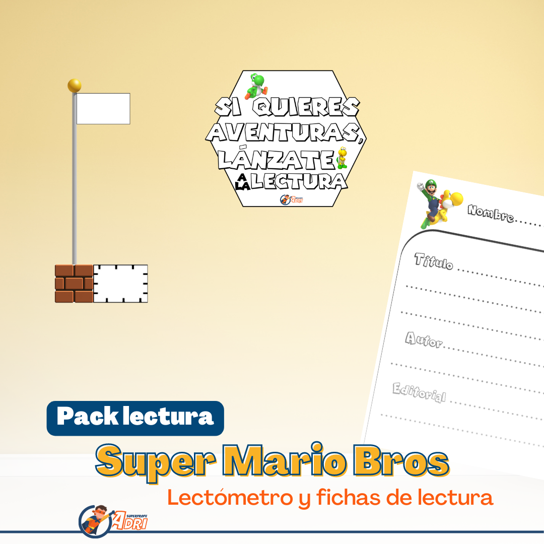 Lectómetro y fichas de lectura para el aula siguiendo la temática de Mario Bros, se trata de un documento en 2 versiones: una para colorear y otra en color.