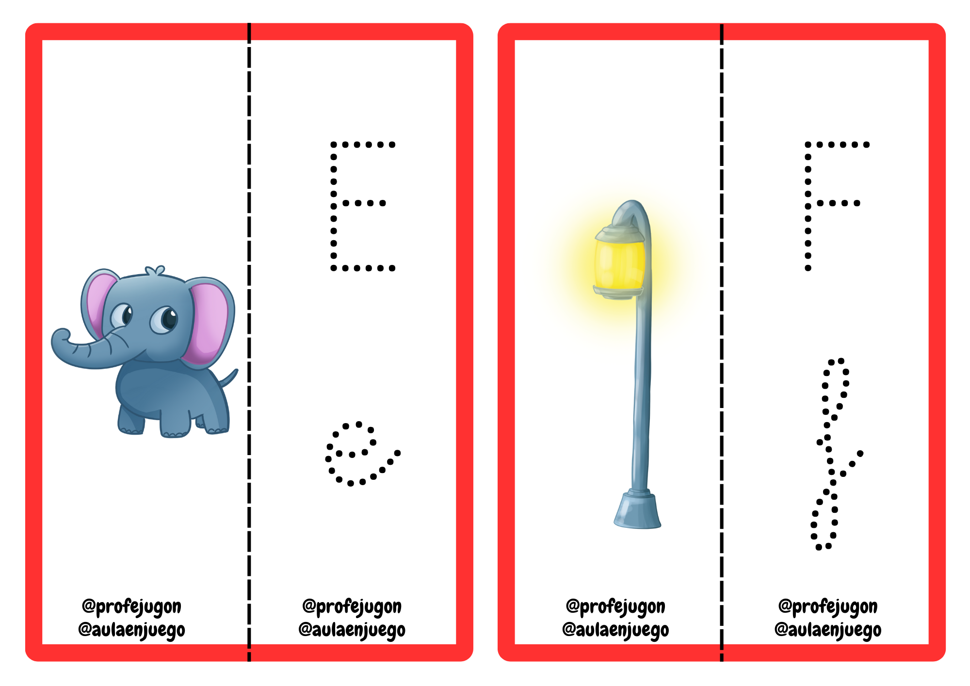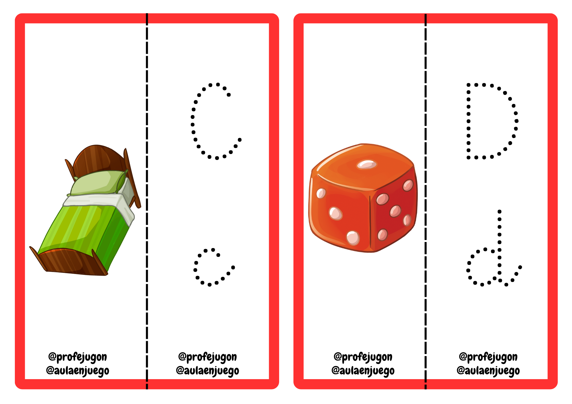 - Baraja todas las tarjetas y busca las parejas. Cada vez que encuentres una, te la quedas a modo de puntuación. Con las tarjetas boca arriba, desordenadas sobre la mesa, debes combinar cada pareja, después repasar las letras y decir en voz alta la palabra de la ilustración, además de otra palabra que empiece con esa letra.