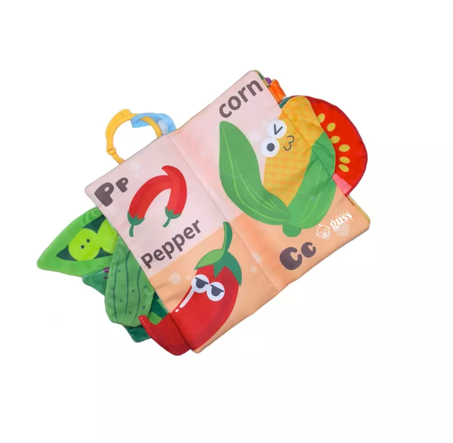 Elementos incluidos: 1 Libro sensorial con colgador (Vegetable) con 6 páginas coloridas y colas texturizadas