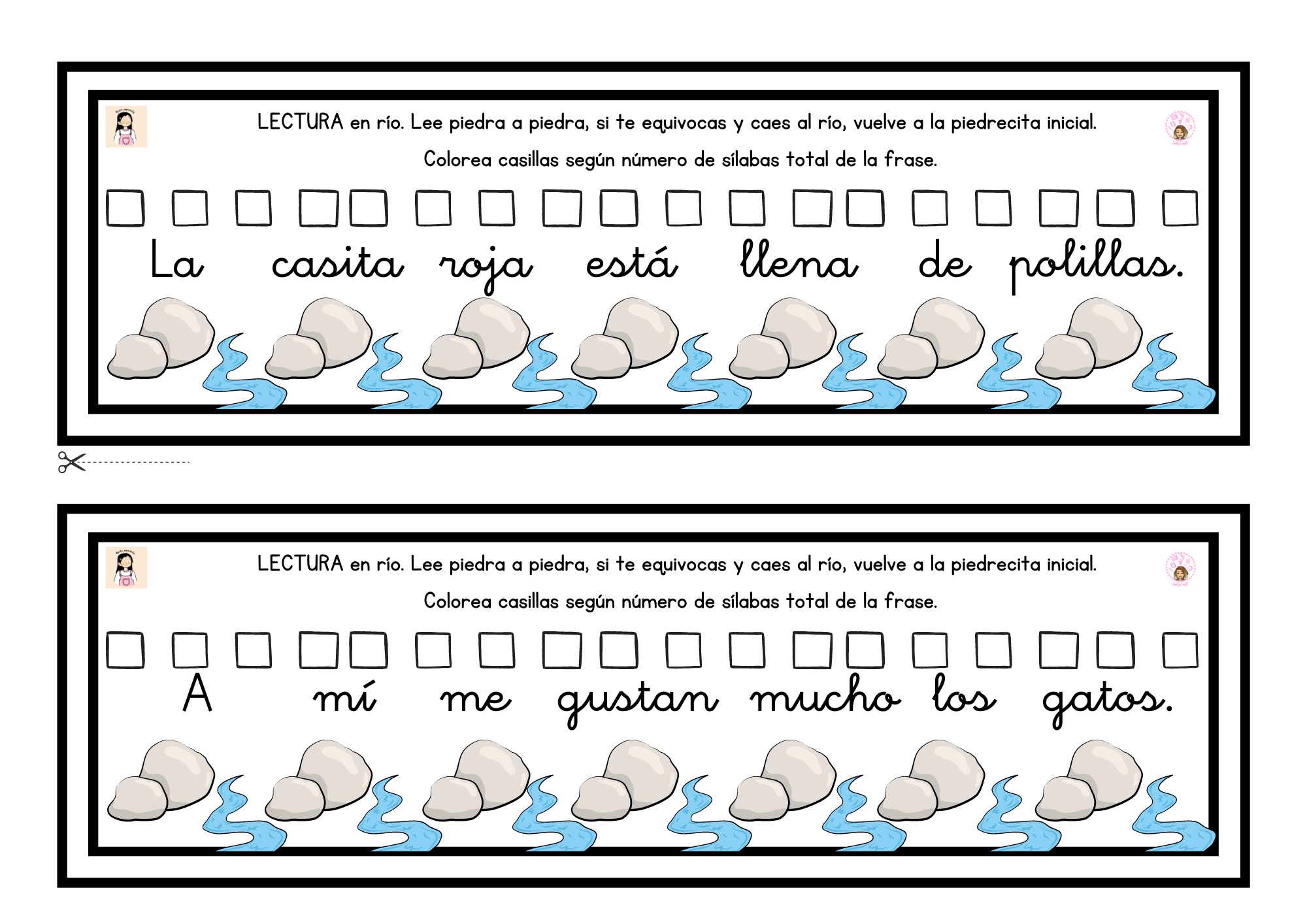 Llavero de plantillas de frases de lectora comprensiva basado en el método de LECTURA en río, paso a paso, ideal para entrenar habilidades PRELECTORAS.