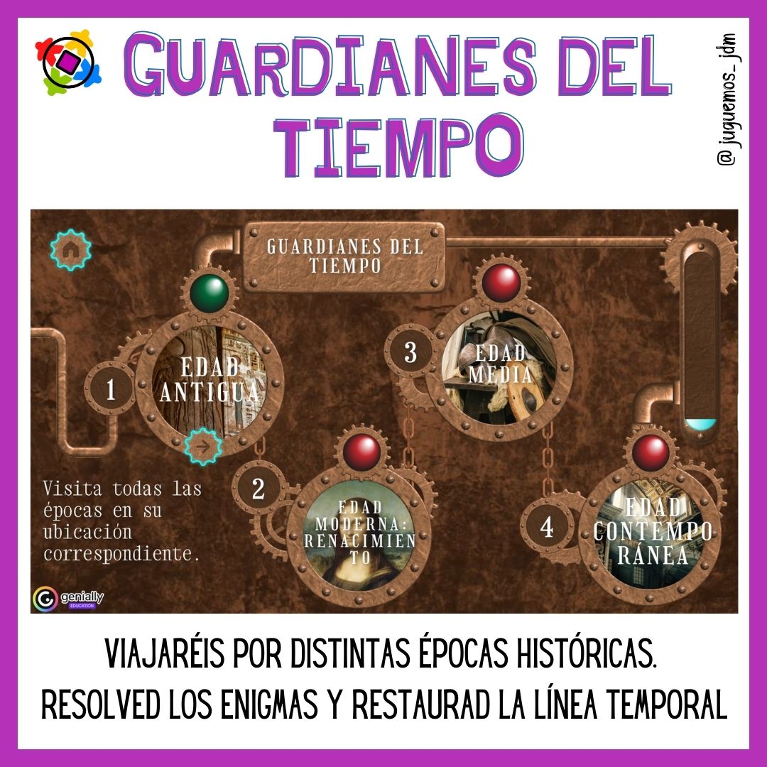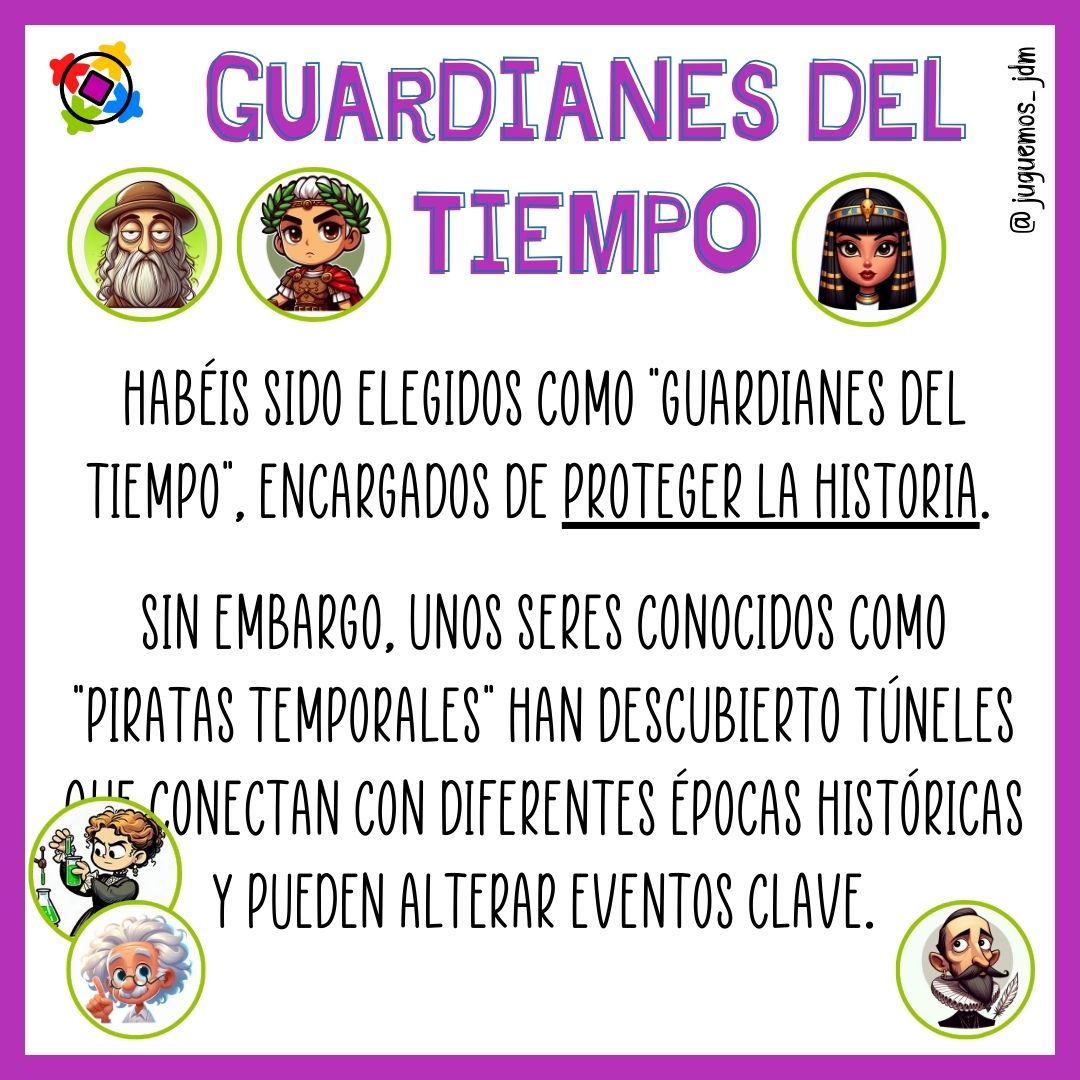 ⏳ Habéis sido elegidos como “Guardianes del Tiempo” y tenéis una misión muy importante: proteger la historia. Pero cuidado, los “Piratas Temporales” están alterando momentos clave de nuestro pasado.