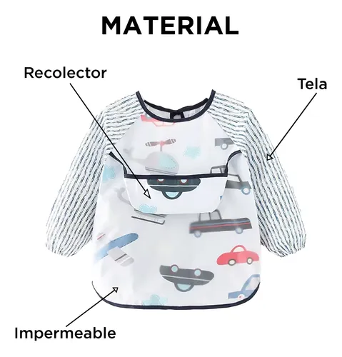 Mantenga a su pequeño sintiéndose cómodo y limpio con nuestra colección de mandiles impermeables ideales para nuestro bebé. Los mandiles incluyen plástico impermeable en el pecho y bolsillo para atrapar la caída de los alimentos, las mangan con elástico y dos sujetadores en la parte de la espalda. Fácil de limpiar, nuestro mandil resiste las manchas.