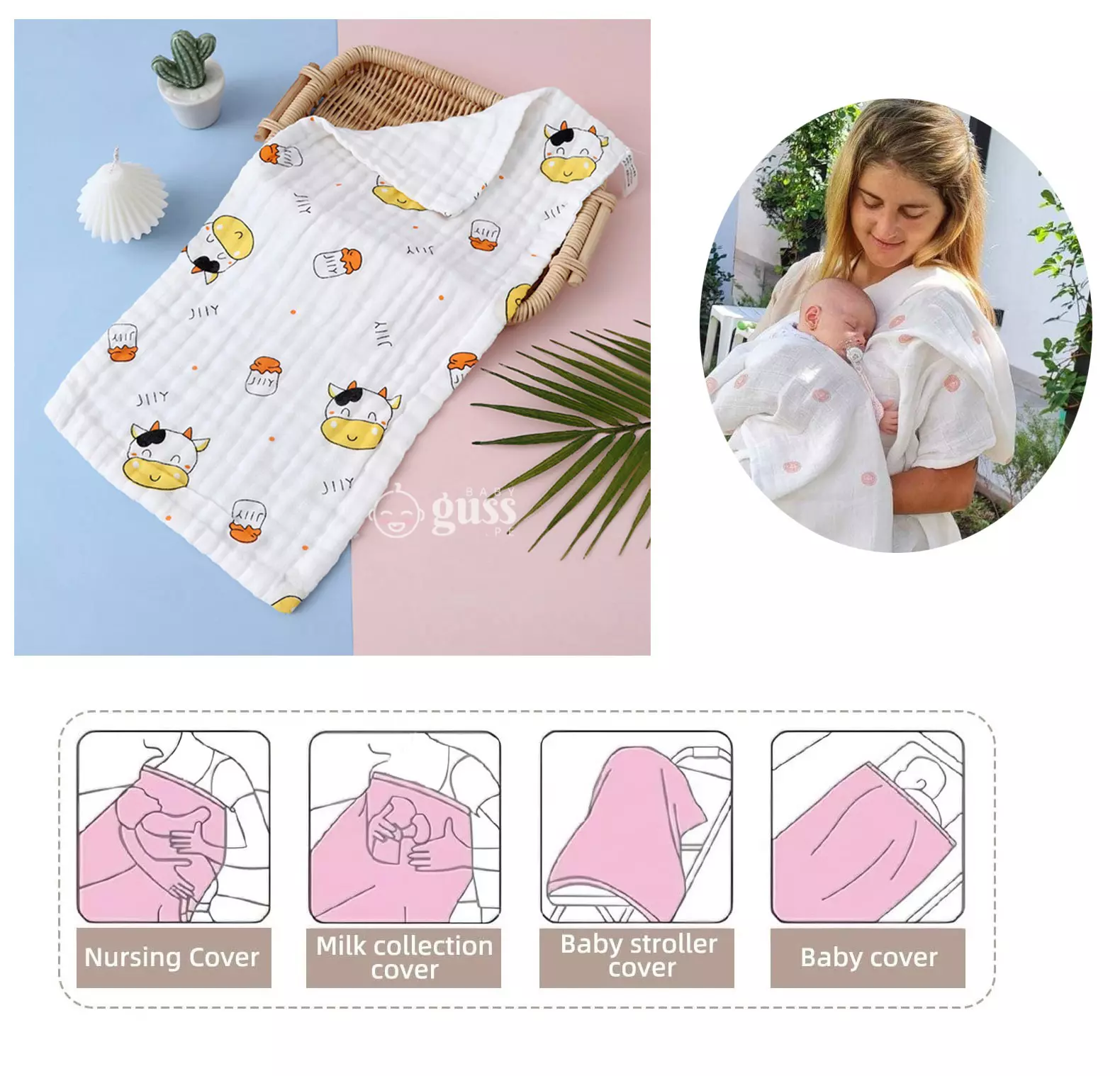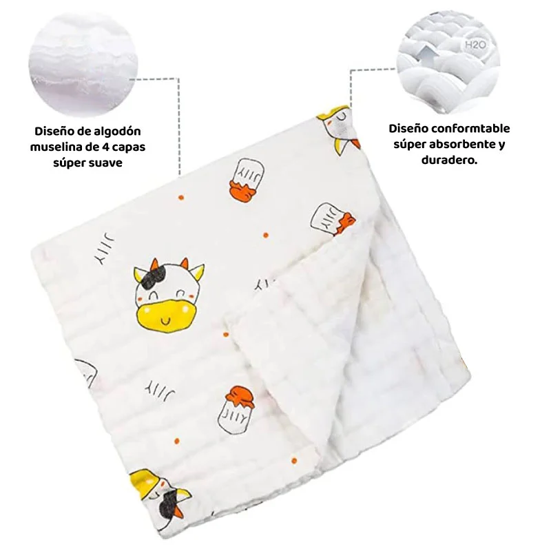 Elementos incluidos: Manta Muselina Suave Algodón para Bebé 4 capas