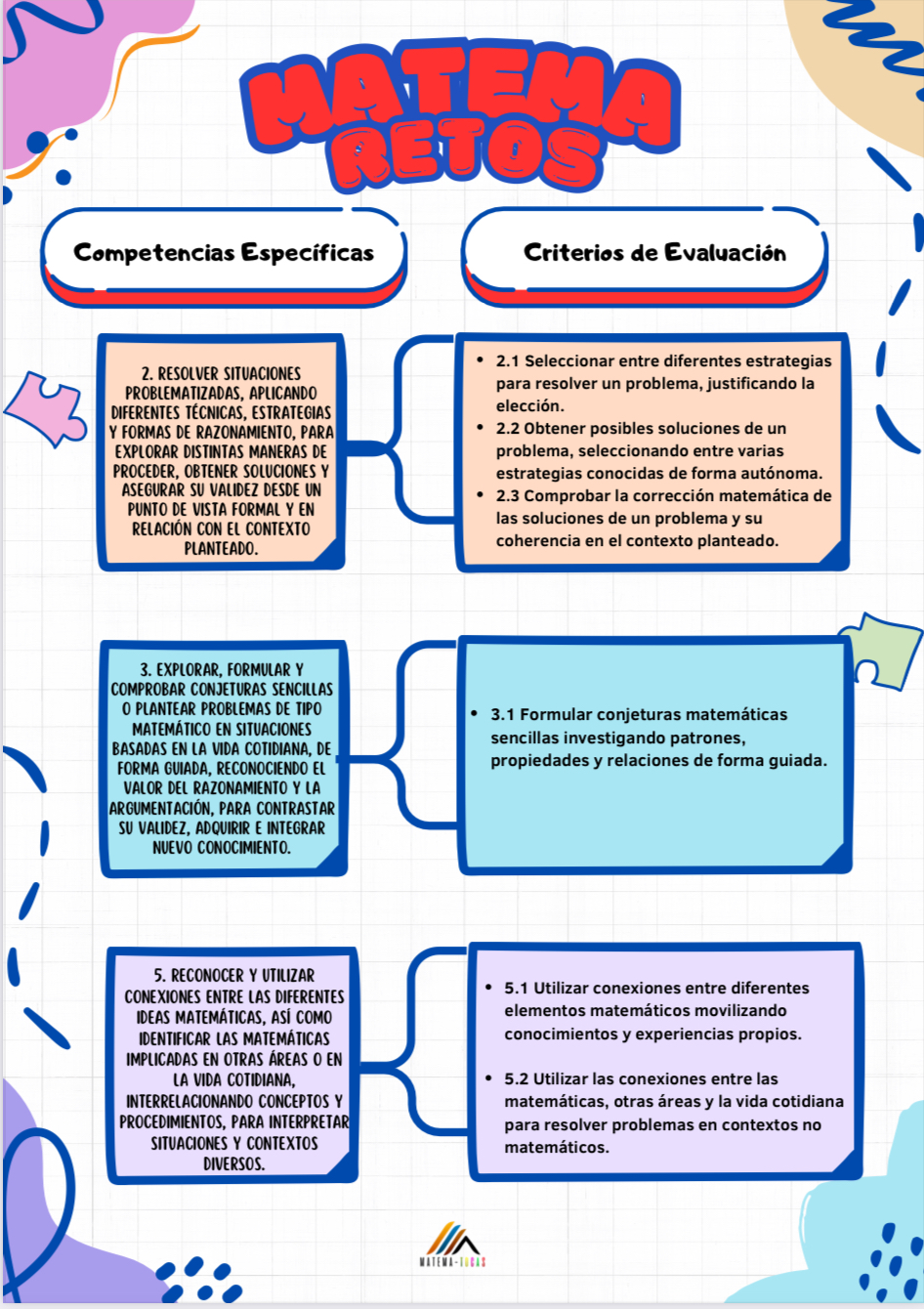 Matema-Retos es un material creado a partir de la experiencia y conocimiento del equipo de Matema-tocas, en un proceso de realización, puesta en practica y evaluación en el aula. Y por supuesto, es un juego para aprender y divertirse.