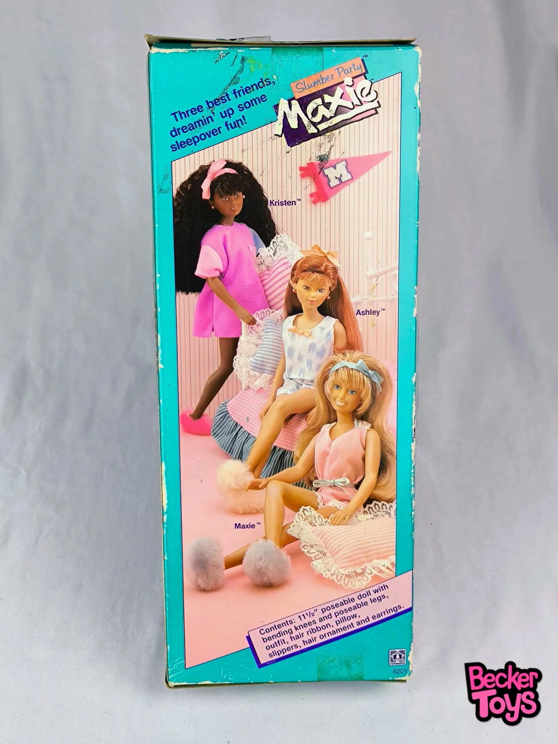 Muñeca Vintage de colección Maxie Slumber Party de 1988. Nueva, nunca sacada de la caja. Caja dañada.