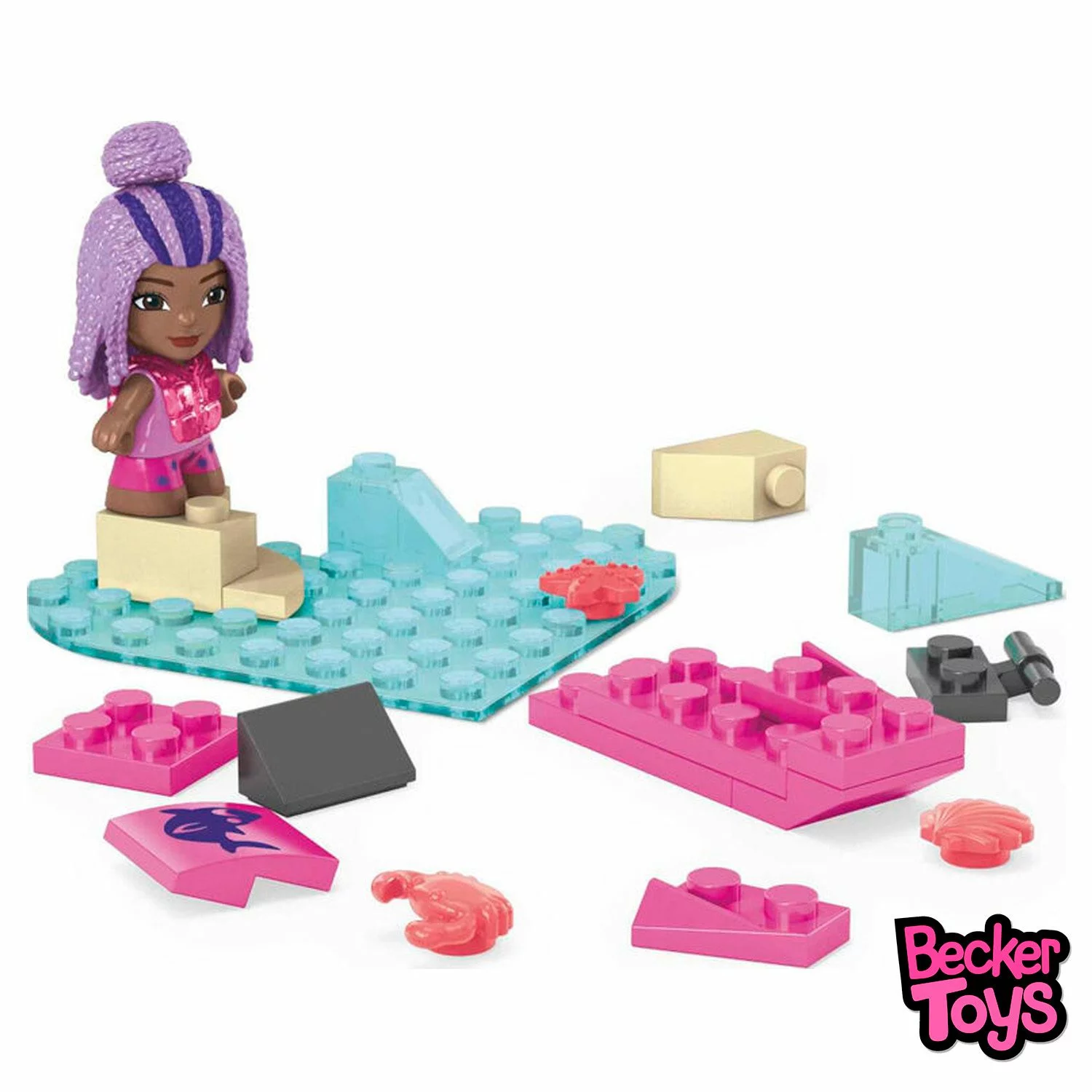 El set incluye múltiples piezas para crear un ambiente playero, accesorios temáticos y figuras que cambian de color. Es ideal para fomentar la creatividad y la imaginación, permitiendo a los niños jugar mientras construyen