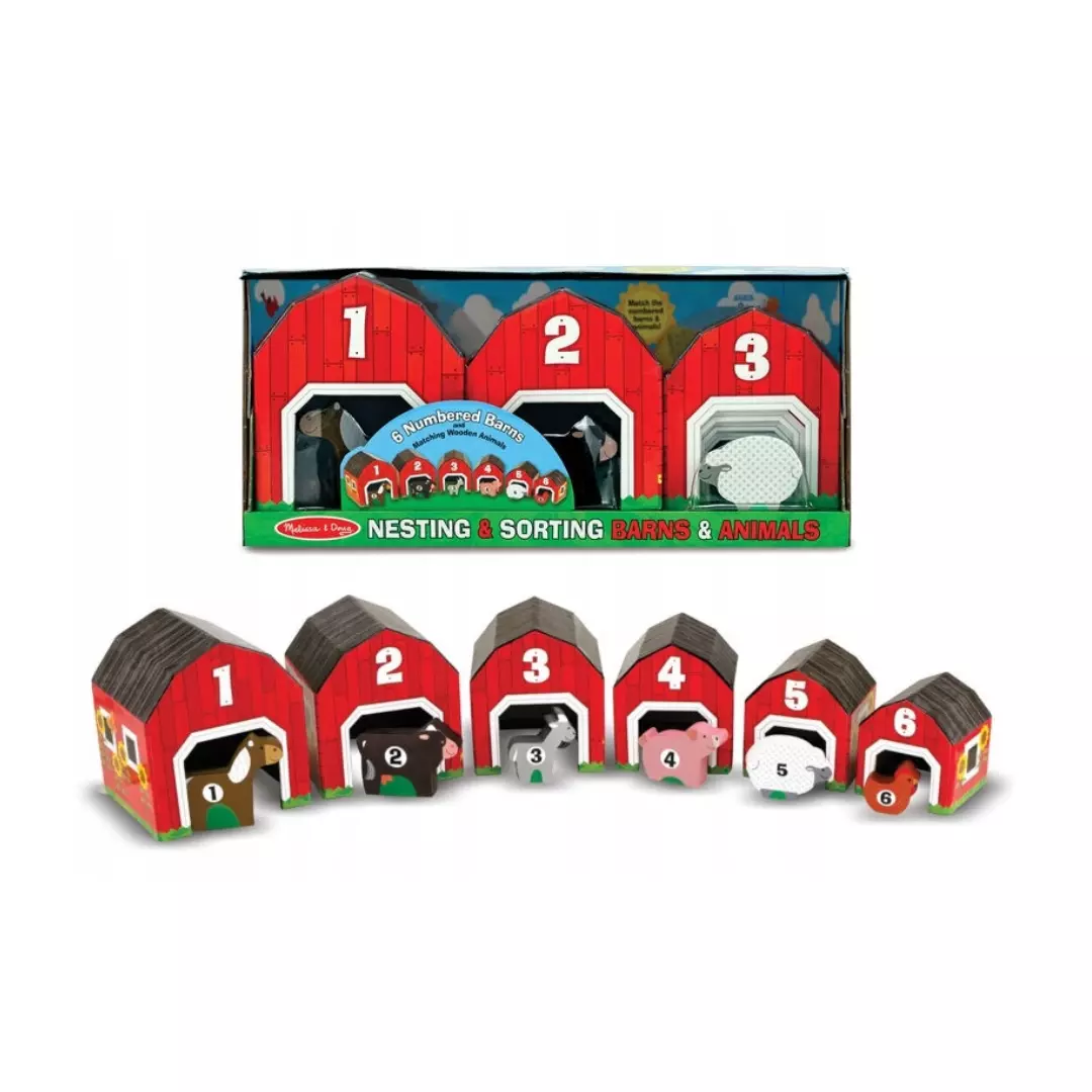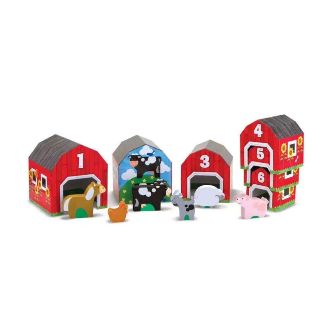 Toma seis bloques para anidar y clasificar, agrega seis animales numerados para entrar y ¿qué tienes? ¡Una granja llena de juegos imaginativos de apilar, contar, esconder y buscar, mezclar y combinar! Este encantador juego permite a los niños construir una escena de granja llena de graneros de color rojo brillante, con un animal por cada granero. En sus paneles frontales, los graneros cuentan con puertas del tamaño adecuado para sus ocupantes animales; en el reverso, una escena a todo color que muestra al animal en un escenario al aire libre. ¡Los niños también pueden emparejar números en los graneros y animales para formar los pares correctos, reforzando conceptos de aprendizaje temprano mientras juegan!