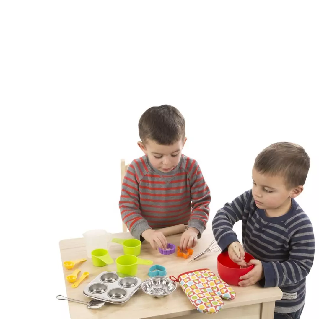 Este set de repostería promueve el juego simbólico, la coordinación mano-ojo y el desarrollo del lenguaje a través de la simulación de recetas. Fabricado con materiales duraderos y seguros, es ideal para niños a partir de 3 años que disfrutan jugando a cocinar. Un regalo encantador que une creatividad, juego y aprendizaje.