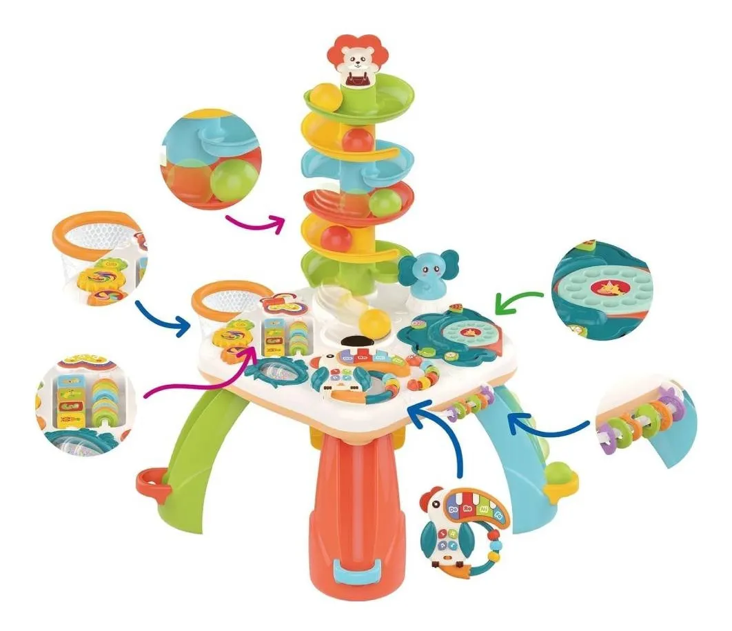 Elementos incluidos: 1 mesita multifuncional con tobogán y pelotas.
