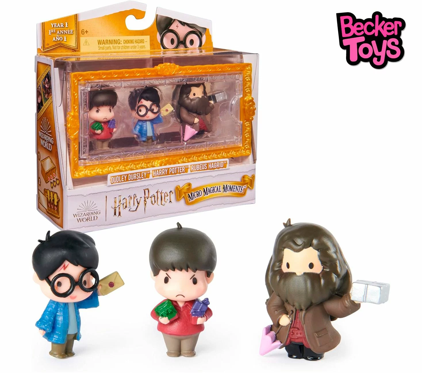 - 3 FIGURAS INÉDITAS DE HARRY POTTER: Descubre figuras de 3,8 cm de Harry Potter, Rubeus Hagrid y Dudley Dursley, una caja de exposición transparente y 3 soportes. Los adorables detalles hacen que estos pequeños juguetes de Harry Potter sean imprescindibles