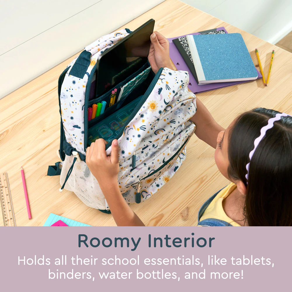 Envíe a sus hijos a la escuela con estilo con esta mochila para niños Bentgo® liviana y duradera con lindos estampados. Fabricada con tela premium no tóxica, en esta cómoda mochila cabe todo lo necesario para la escuela, la guardería de su niño e incluso viajes en avión, incluido un interior espacioso con una funda acolchada para computadora portátil, 2 bolsillos laterales de malla y 2 compartimentos exteriores con cremallera.