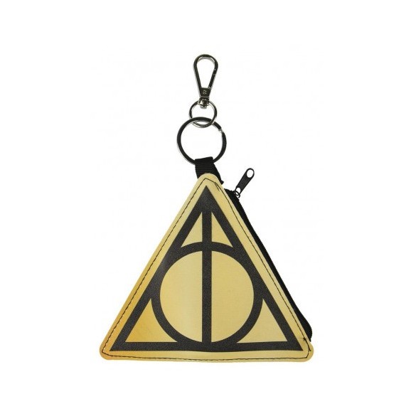 Monedero de Harry Potter, del emblema de las reliquias de la muerte, en versión Kawai. de unos 9 cm. con mosquetón y cremallera