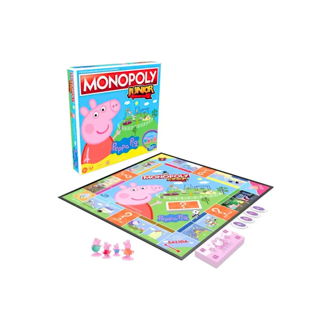 Fabricado por Hasbro con materiales seguros y resistentes, el juego incluye fichas de colección, billetes especiales y un tablero colorido tematizado en el mundo de Peppa Pig. Perfecto para regalar en cumpleaños o celebraciones, Monopoly Junior Peppa Pig garantiza entretenimiento educativo y una experiencia inolvidable para los más pequeños de la casa.