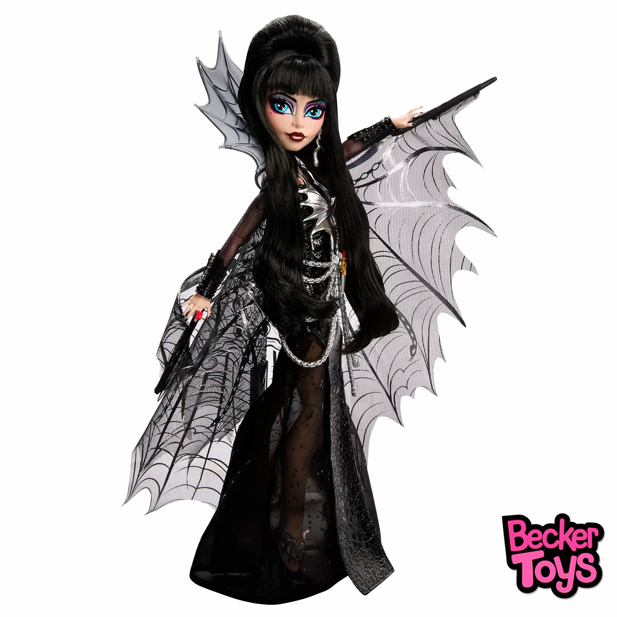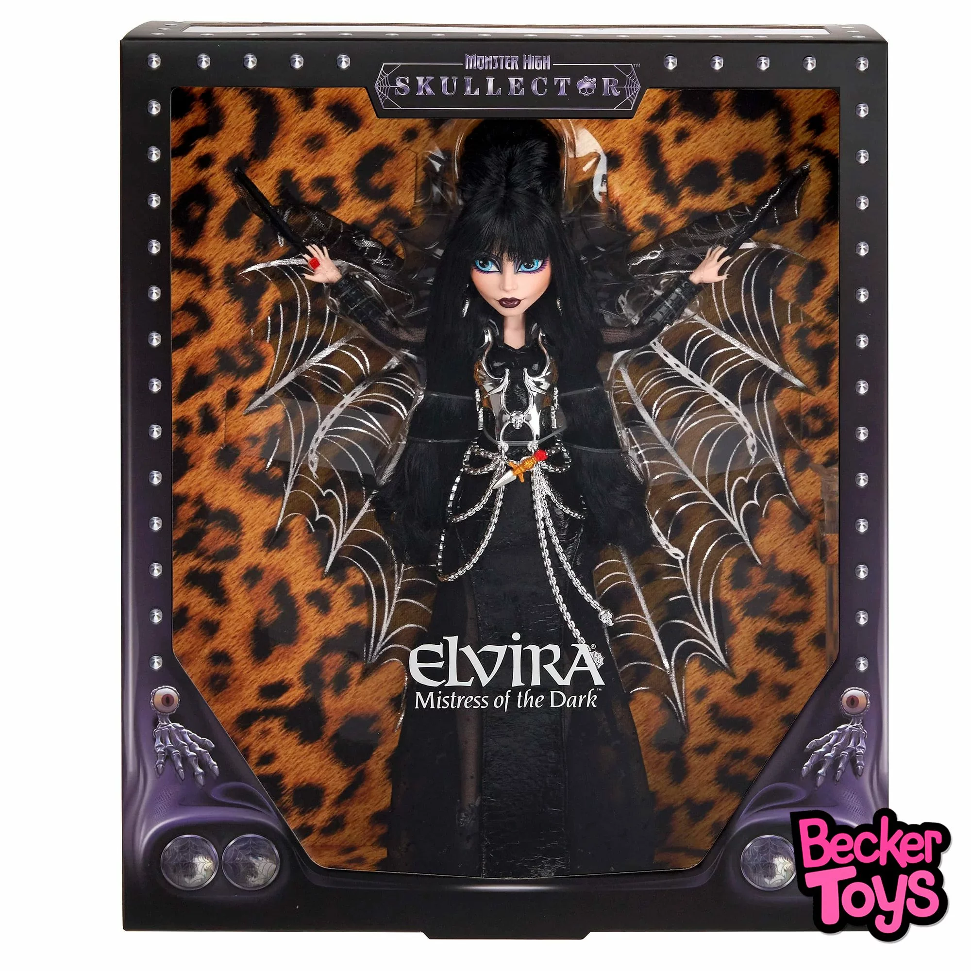 Monster High Skullector Elvira Mistress of the Dark es una edición especial inspirada en la icónica presentadora de terror Elvira, interpretada por Cassandra Peterson. Esta muñeca captura el estilo gótico y glamuroso de Elvira con un toque Monster High.