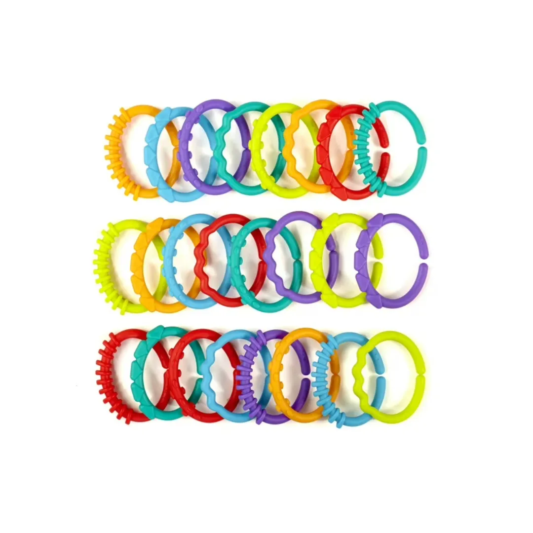 - Pack de 24 enlaces de colores brillantes y texturas variadas.