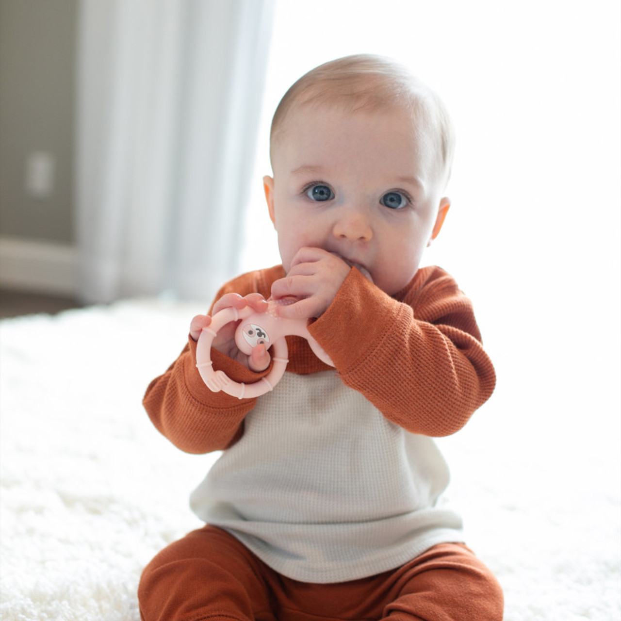 - Promueve el desarrollo del bebé. Este juguete ergonómico para mordedor de bebé es perfecto para la exploración de la lengua y el desarrollo del habla.