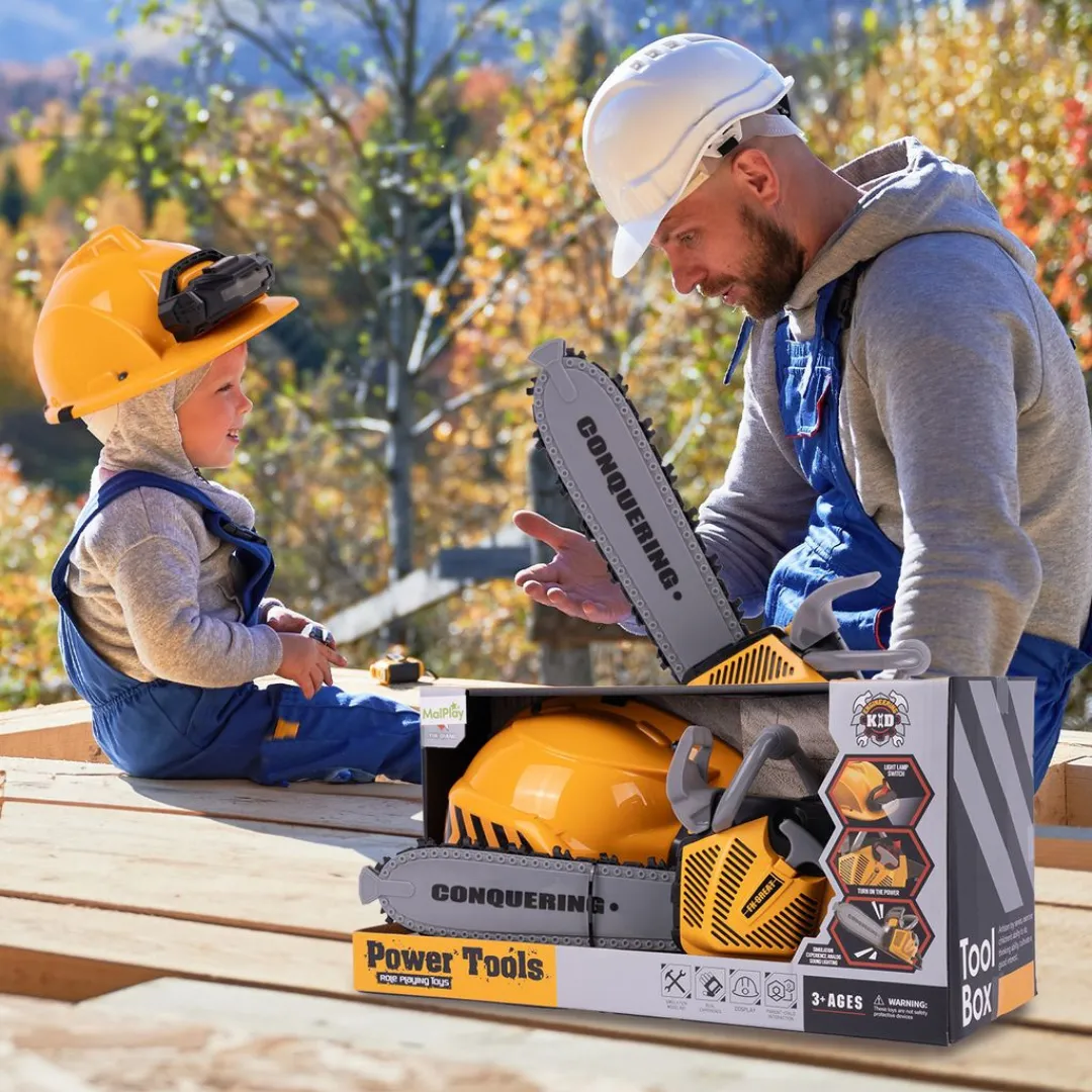 Incluye un casco de juguete para completar la experiencia, fomentando el juego responsable. Ideal para niños curiosos que disfrutan de las herramientas y aventuras. ¡Un regalo ideal para horas de entretenimiento activo y creativo!