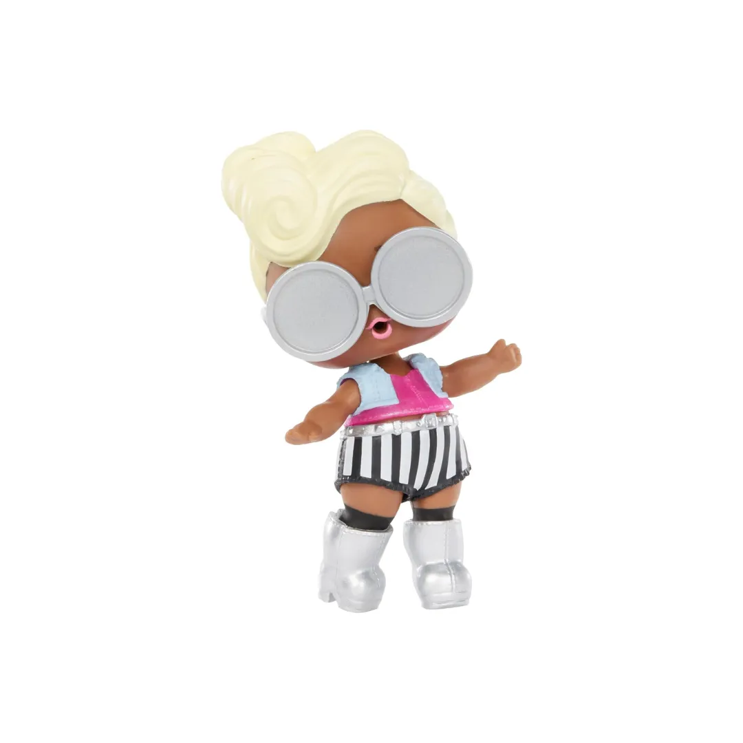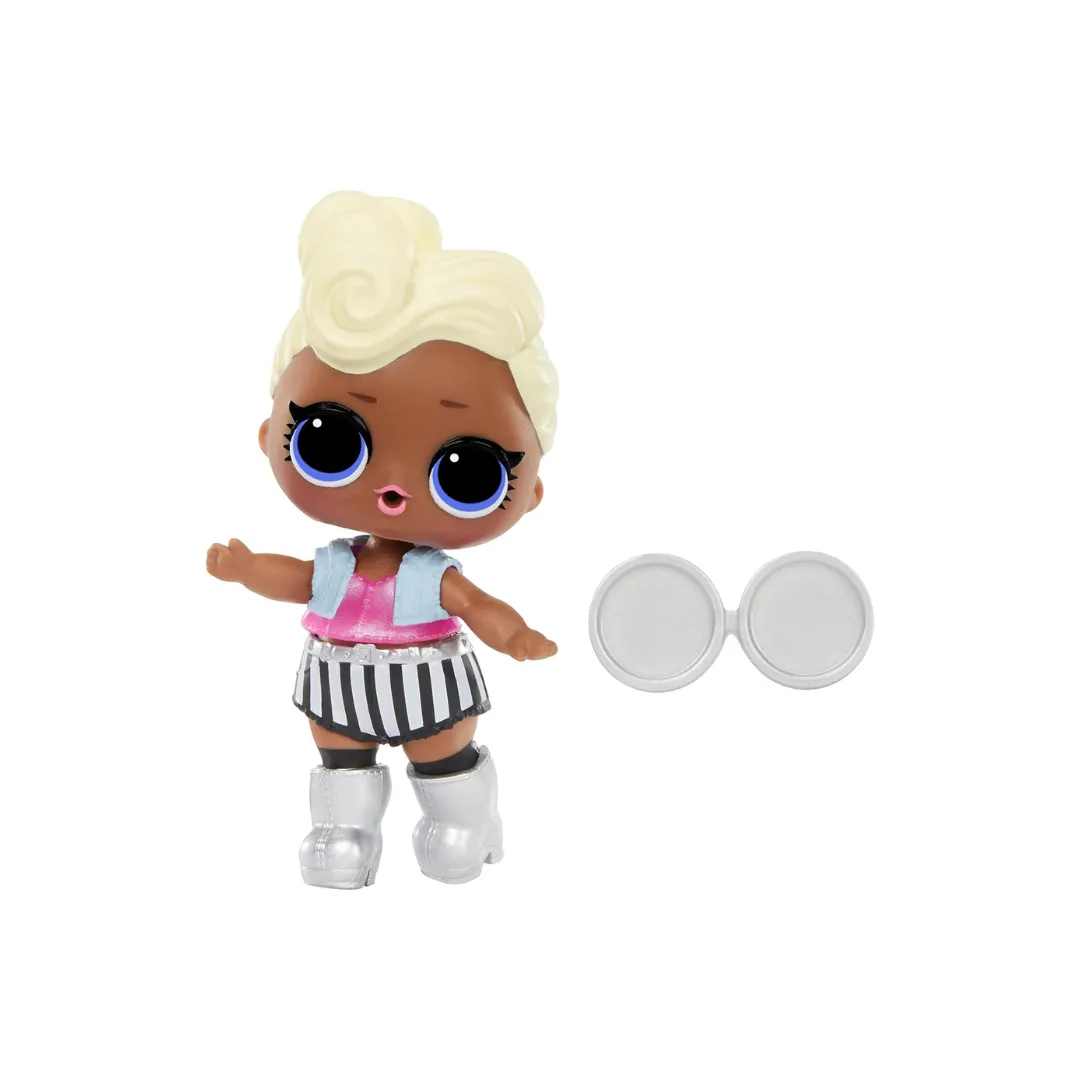 La L.O.L. Surprise! Funky Q.T. es una encantadora muñeca Tot de la Serie 3 “Confetti Pop”, perteneciente al club de Rock. Su personalidad es divertida y energética: le encanta la música rock, bailar disco y… ¡comer hamburguesas!
