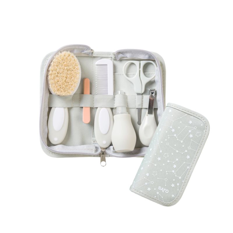 Este práctico neceser de aseo para bebé color Gris incluye los siguientes productos: