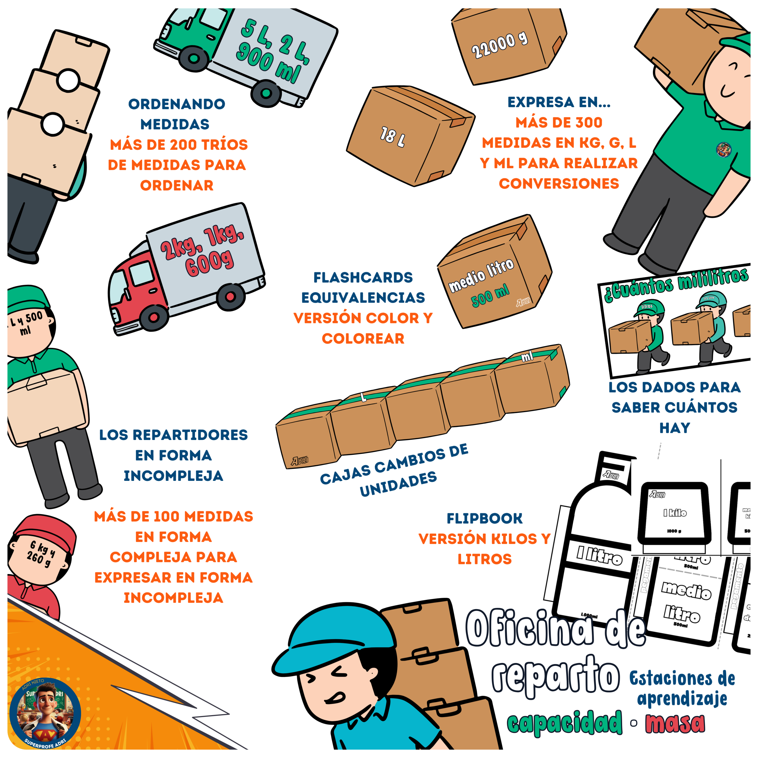 📦 EXPRESA EN…: más de 300 cajas con medidas en kg, g, ml y l para realizar conversiones.