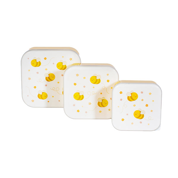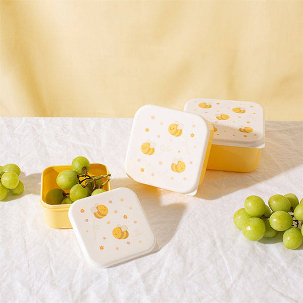 Contiene 3 cajas de plástico libre de BPA de la colección Bee Happy, con las siguientes medidas: