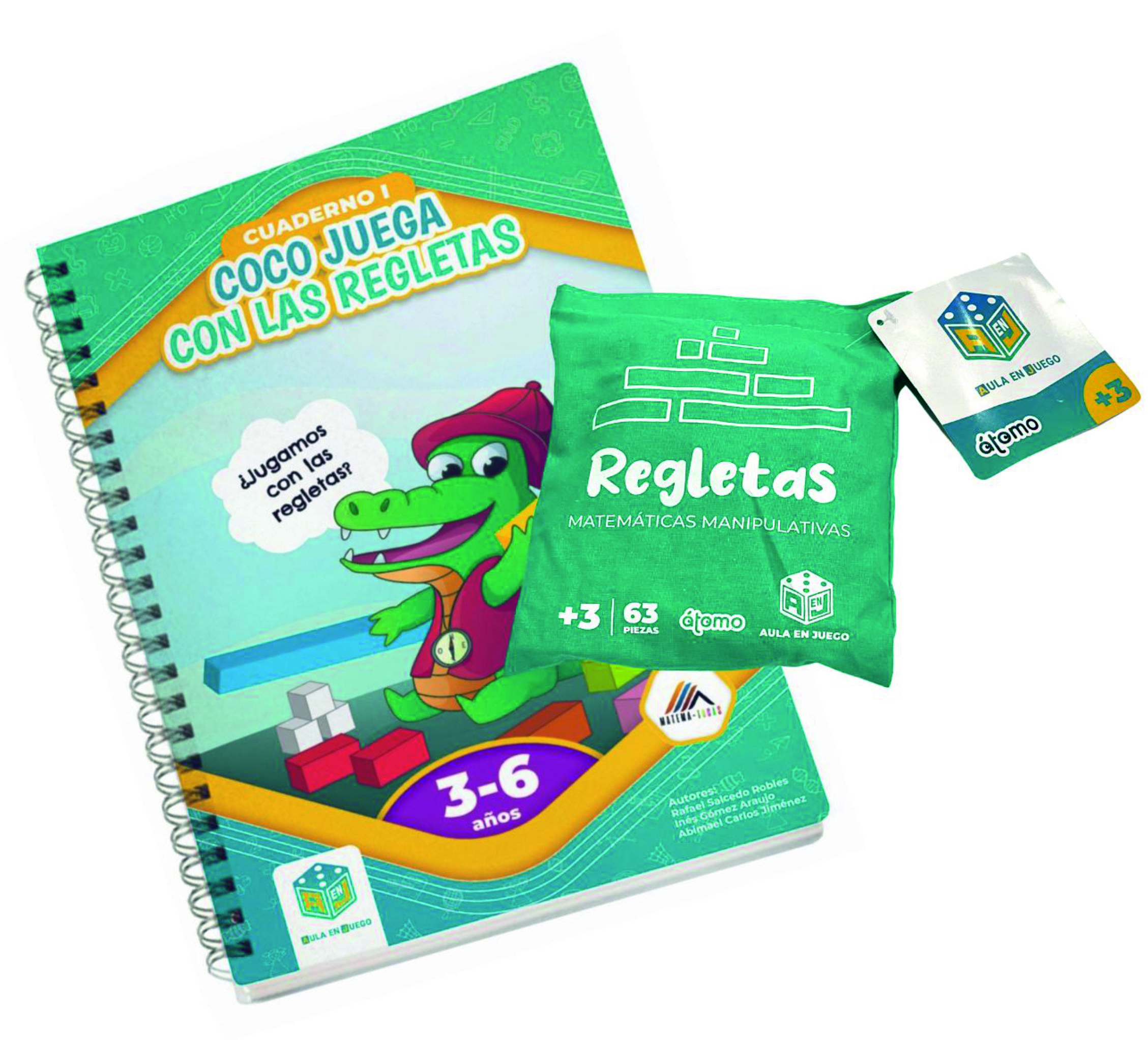 Pack formado por un cuaderno de Coco juega con las Regletas 3-6 años y Set de regletas manipulativas.