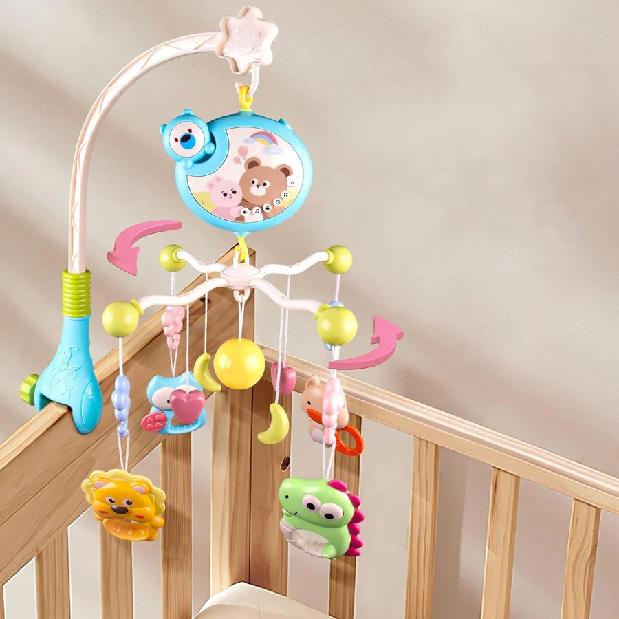 - Móvil Cuna 360° Happy Bear con Proyector: Móvil con su luz nocturna y funciones de proyección de cielo estrellado, este móvil para cuna calmará al bebé para que duerma y creará un ambiente tranquilo para que descanse.