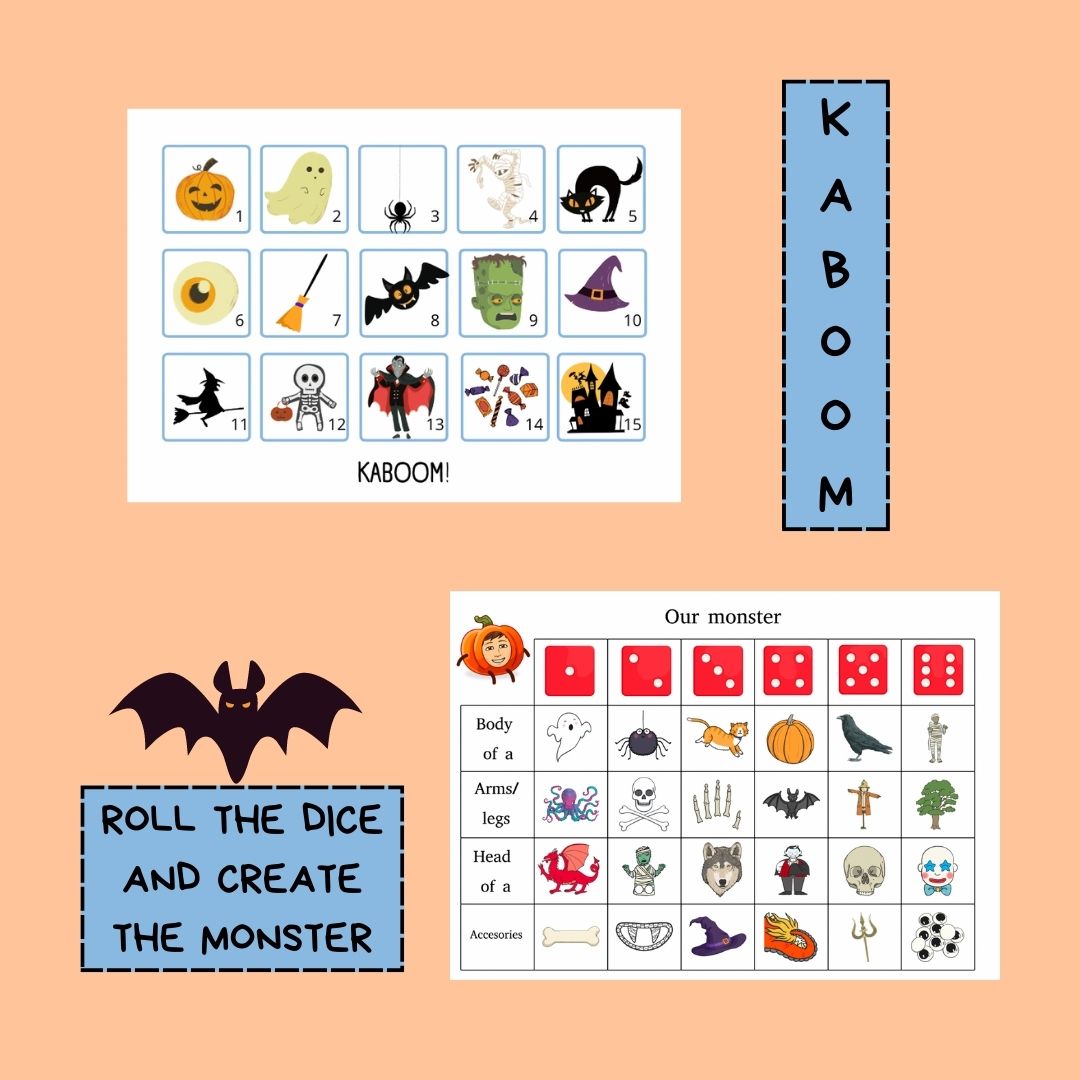 Este pack de recursos de Halloween incluye un Kaboom con imágenes típicas de esta festividad, flashcards para jugar al memory, un tablero para crear tu propio monstruo y una ficha para escribir el nombre de las palabras. Es súper completo e ideal para el aula de inglés, al mismo tiempo que se trabaja el topic de Halloween que tanto gusta a niños y niñas.