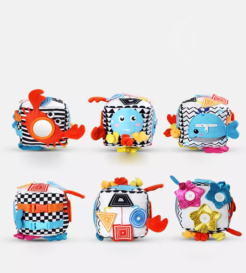 - Cubo Sensorial Actividades: Este cubo sensorial cuenta con divertidas combinaciones de colores, texturas y juegos para tu bebé, que te ayudarán a estimular cada uno de sus sentidos.