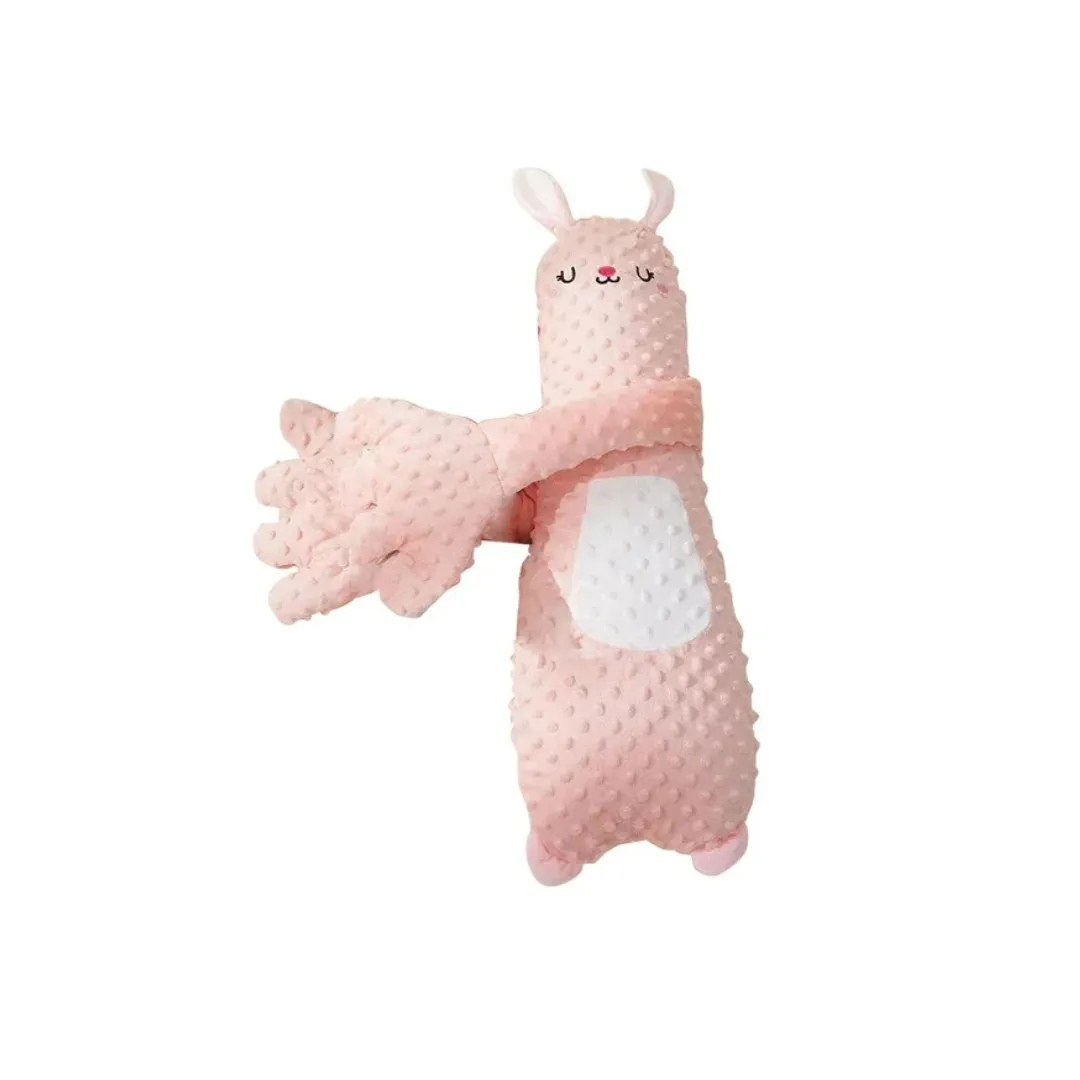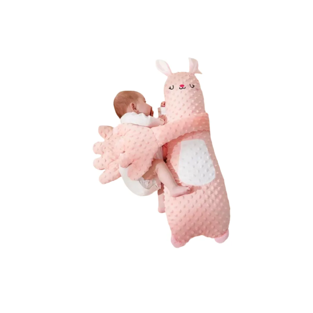 Este peluche calmante con forma de animalito está diseñado para brindar contención, suavidad y tranquilidad al bebé durante el descanso. Sus brazos largos permiten abrazar delicadamente al pequeño, simulando una sensación de compañía que ayuda a que se relaje y concilie mejor el sueño. El material es ultra suave, acolchonado y agradable al tacto, ideal para bebés desde sus primeros meses.